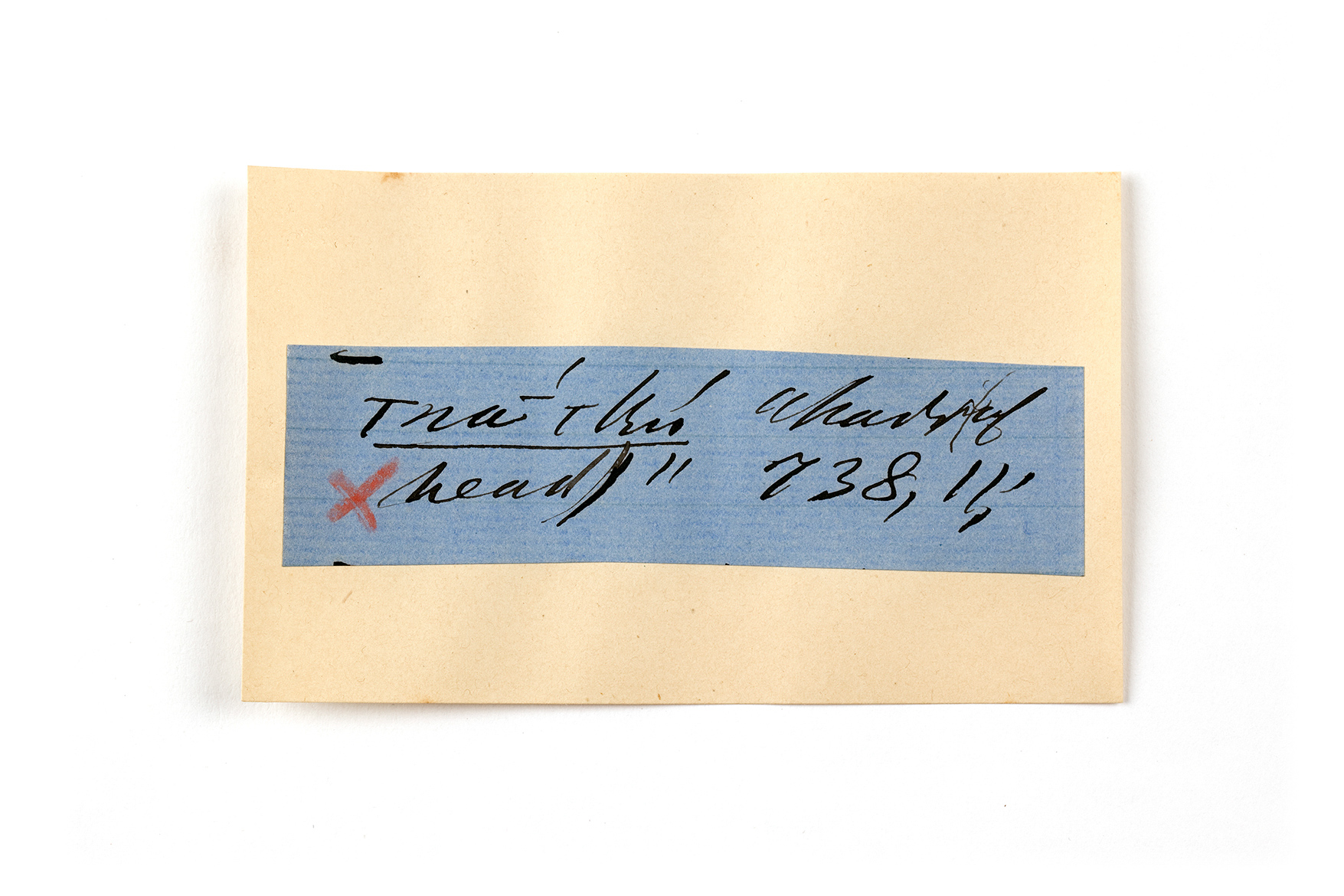 ink on blue paper glued on card