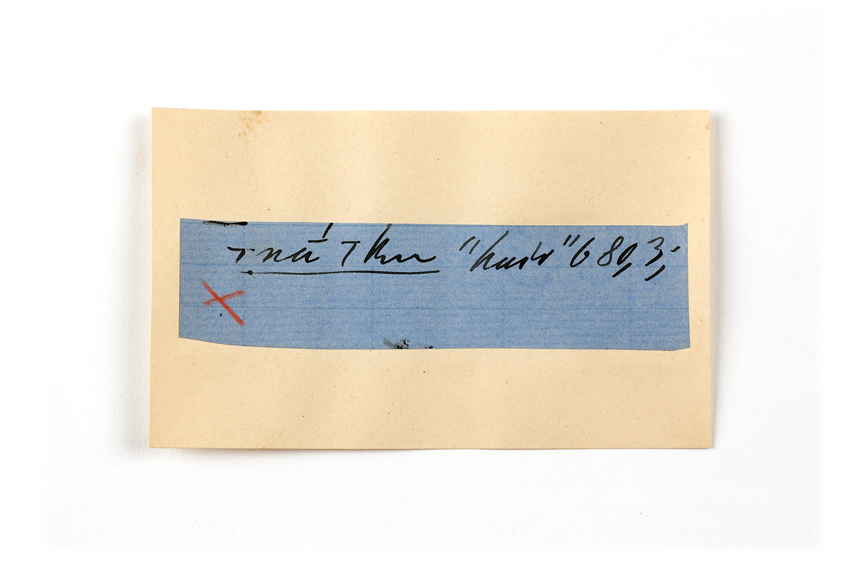 ink on blue paper glued on card