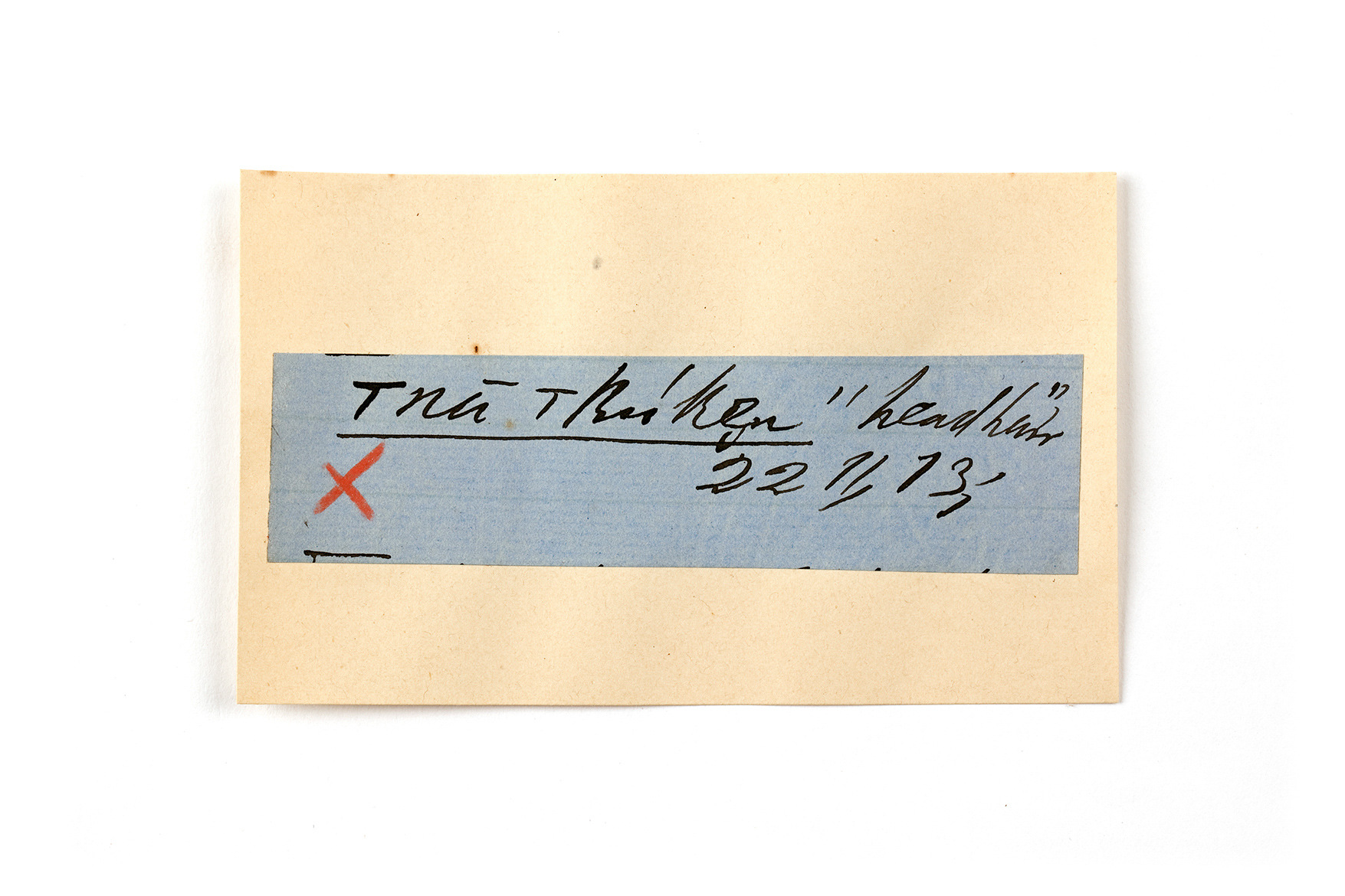 ink on blue paper glued on card