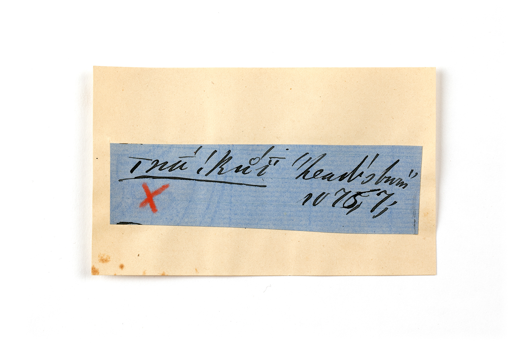 ink on blue paper glued on card