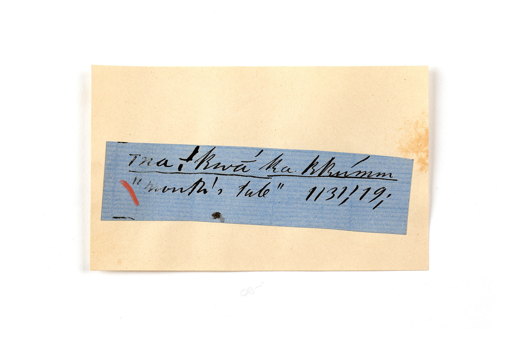 ink on blue paper glued on card