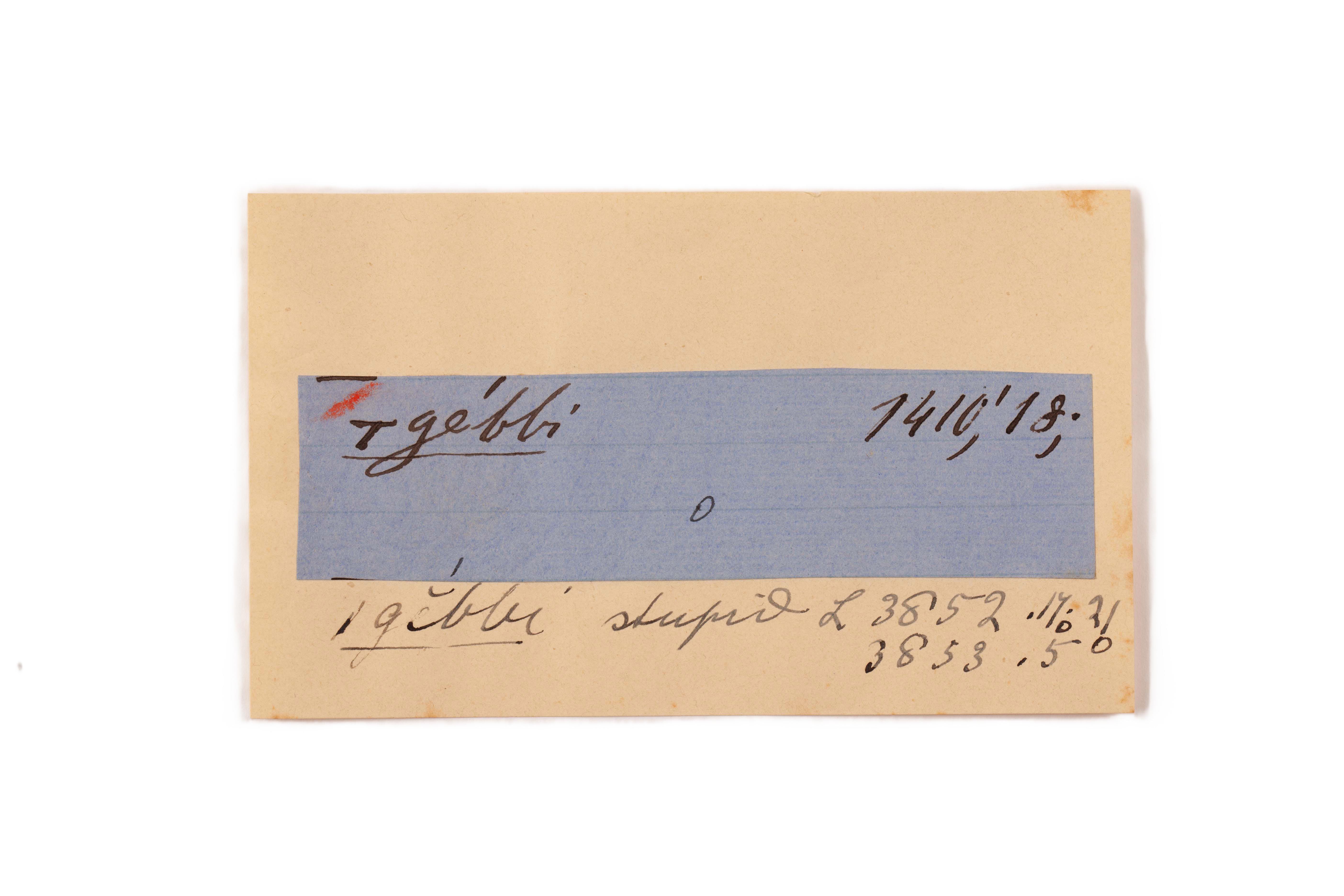 ink on blue paper glued on card