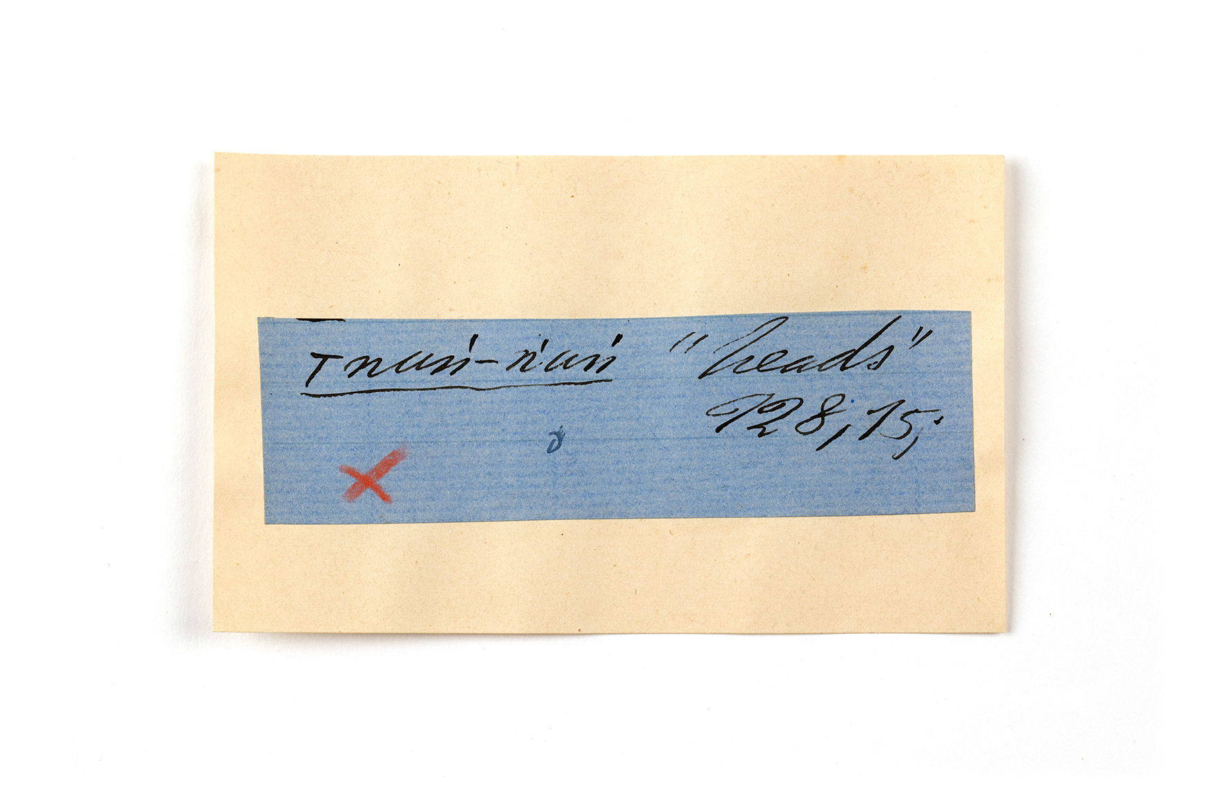 ink on blue paper glued on card