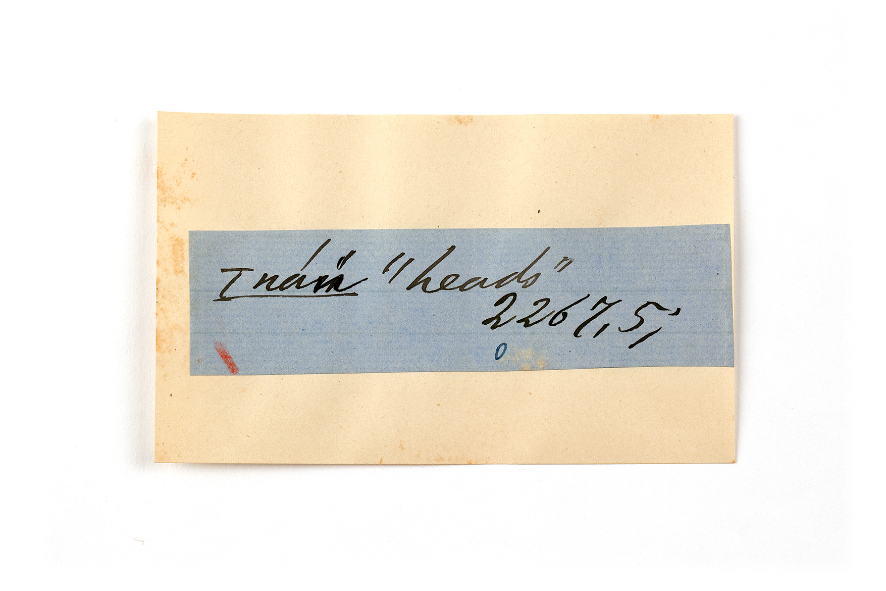 ink on blue paper glued on card