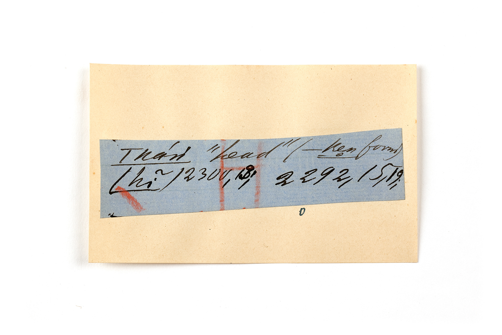 ink on blue paper glued on card