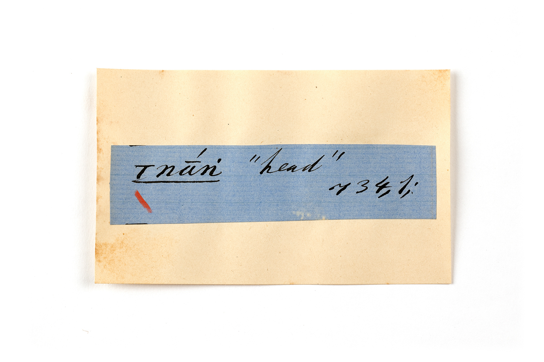 ink on blue paper glued on card