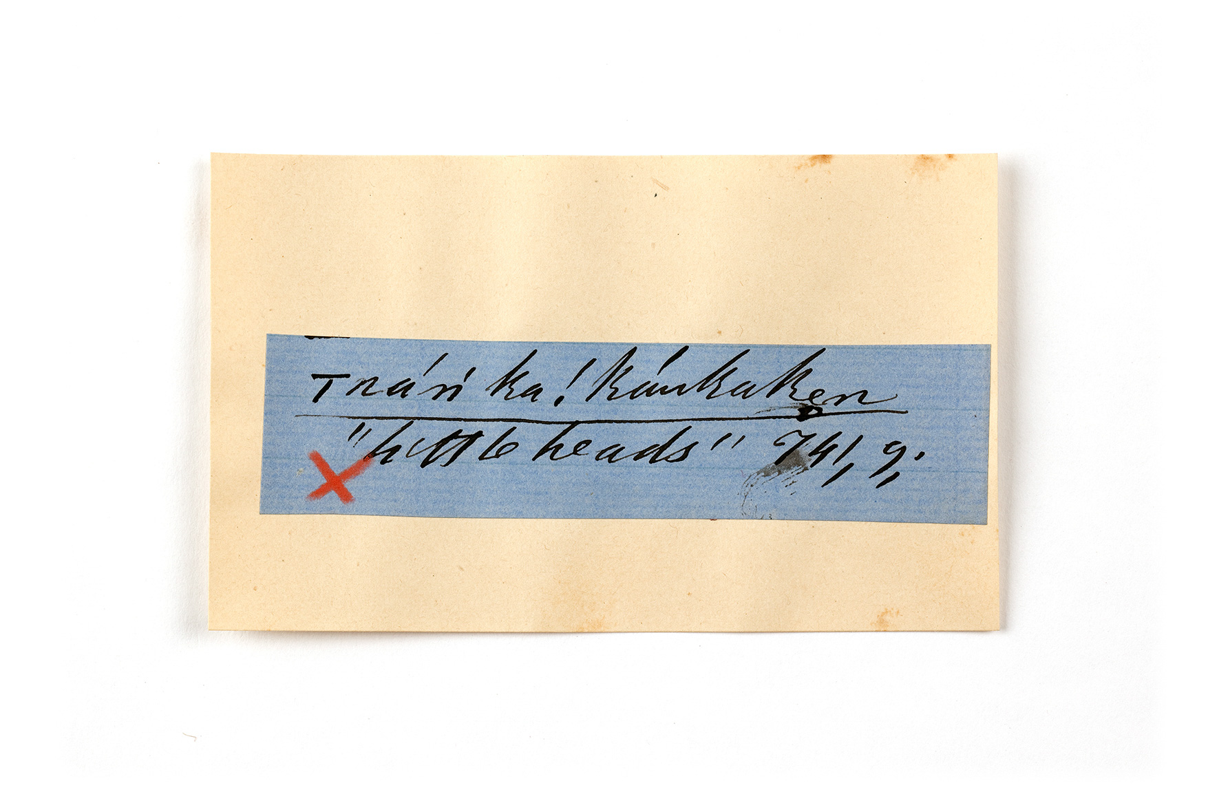 ink on blue paper glued on card