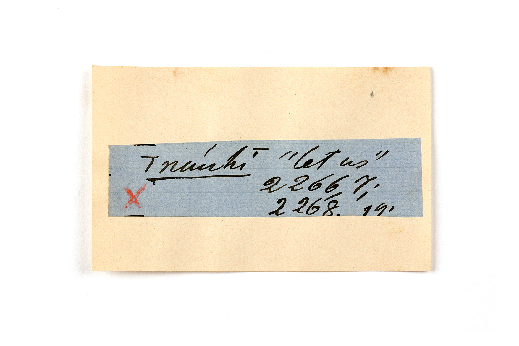 ink on blue paper glued on card