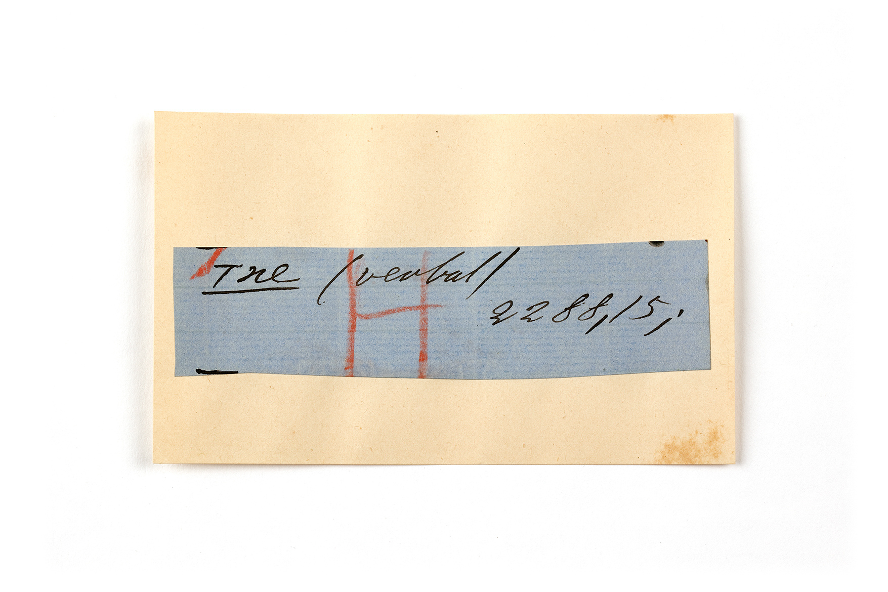 ink on blue paper glued on card