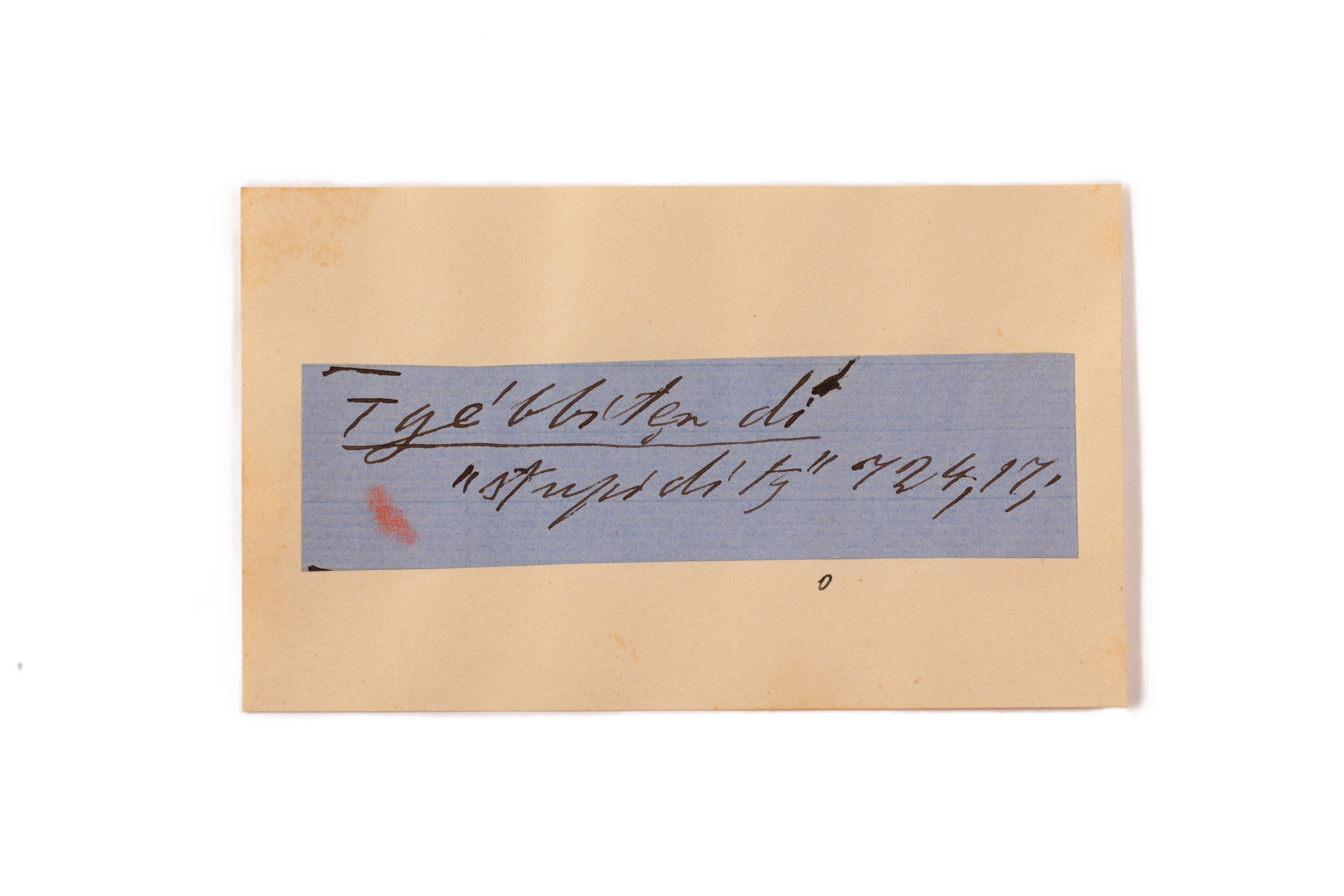 ink on blue paper glued on card