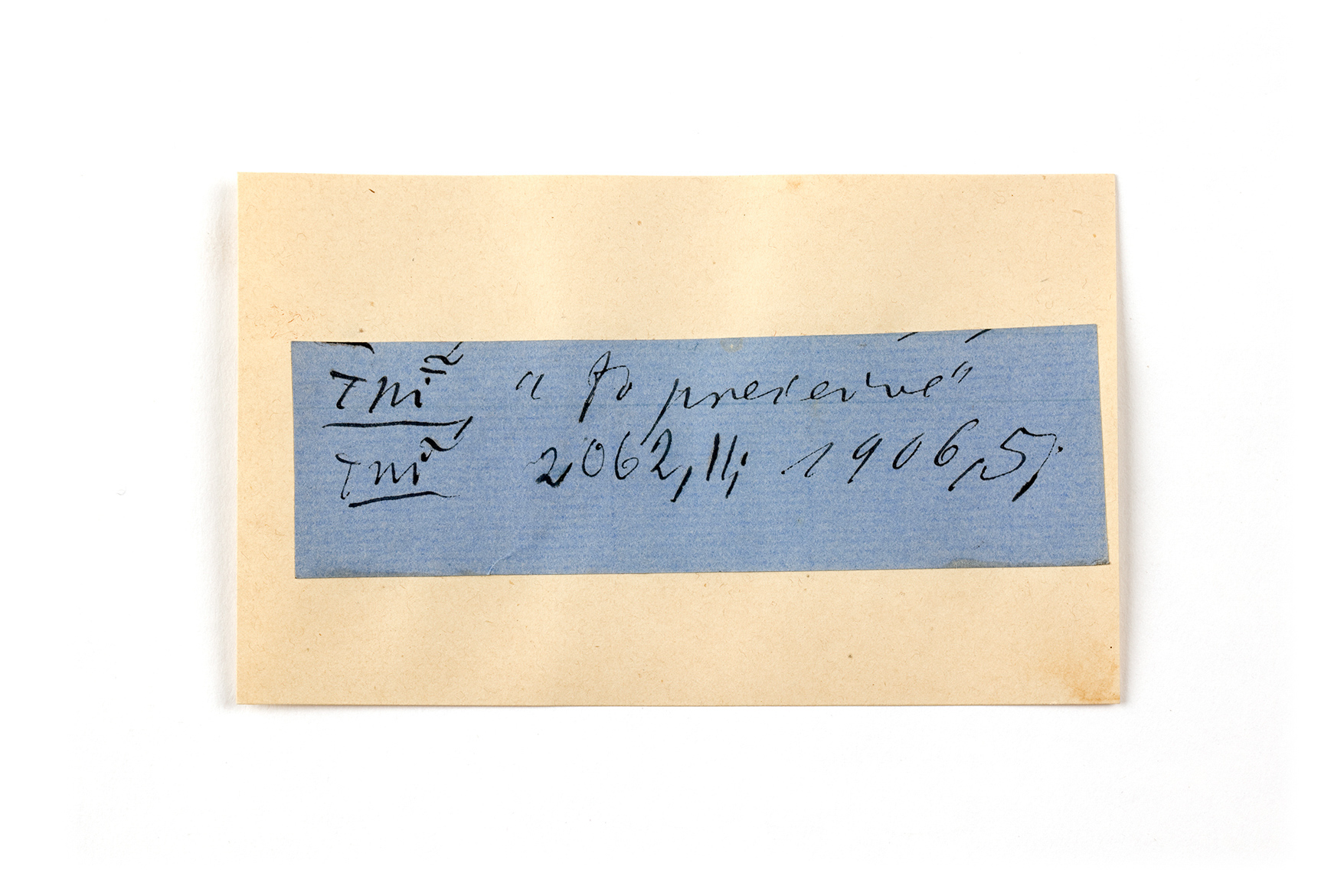 ink on blue paper glued on card