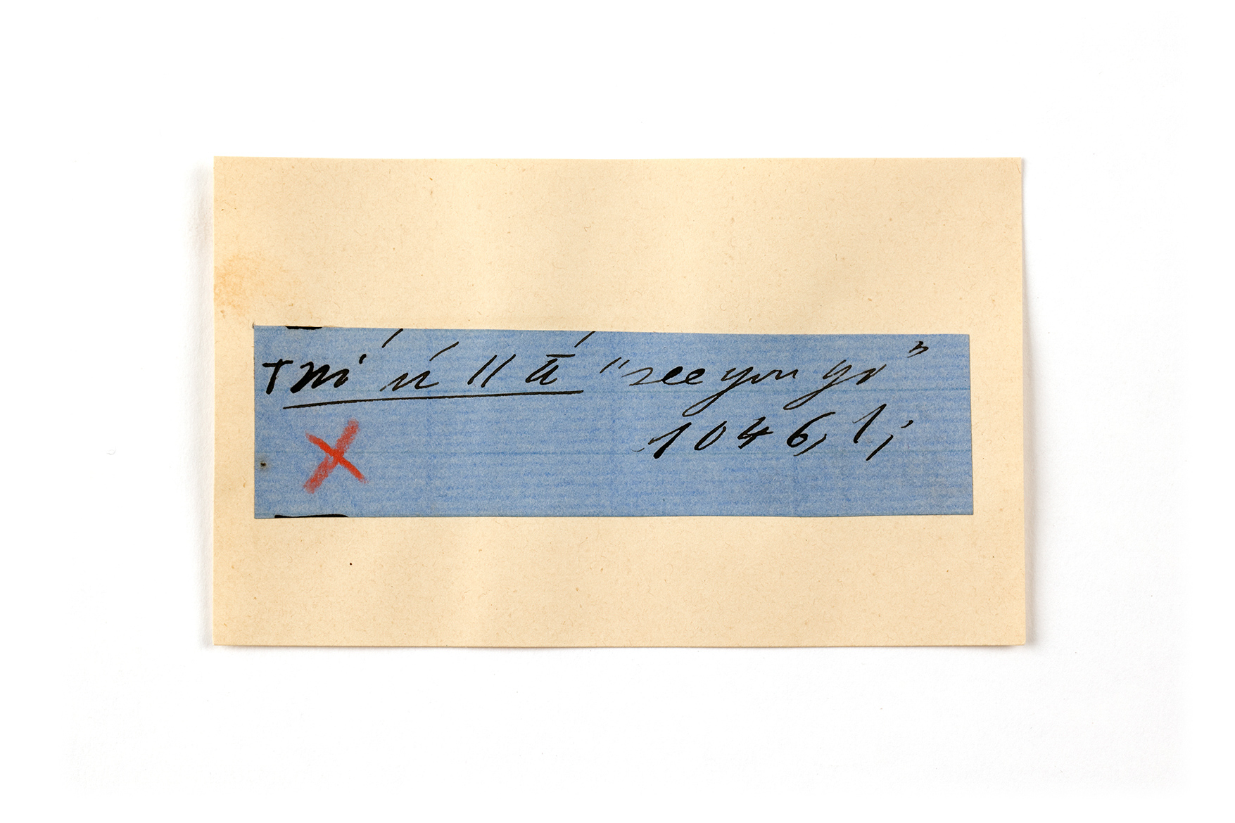 ink on blue paper glued on card