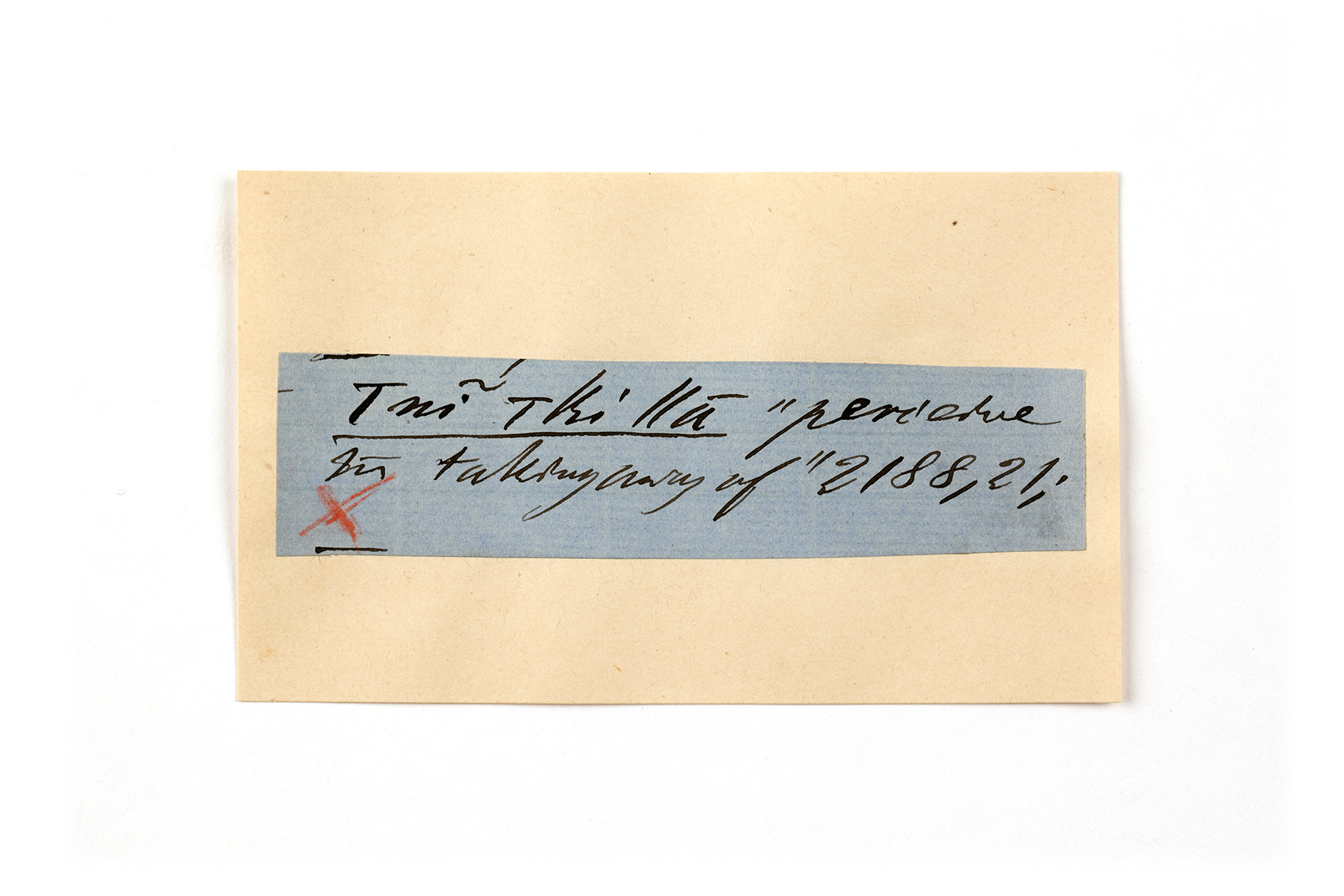 ink on blue paper glued on card