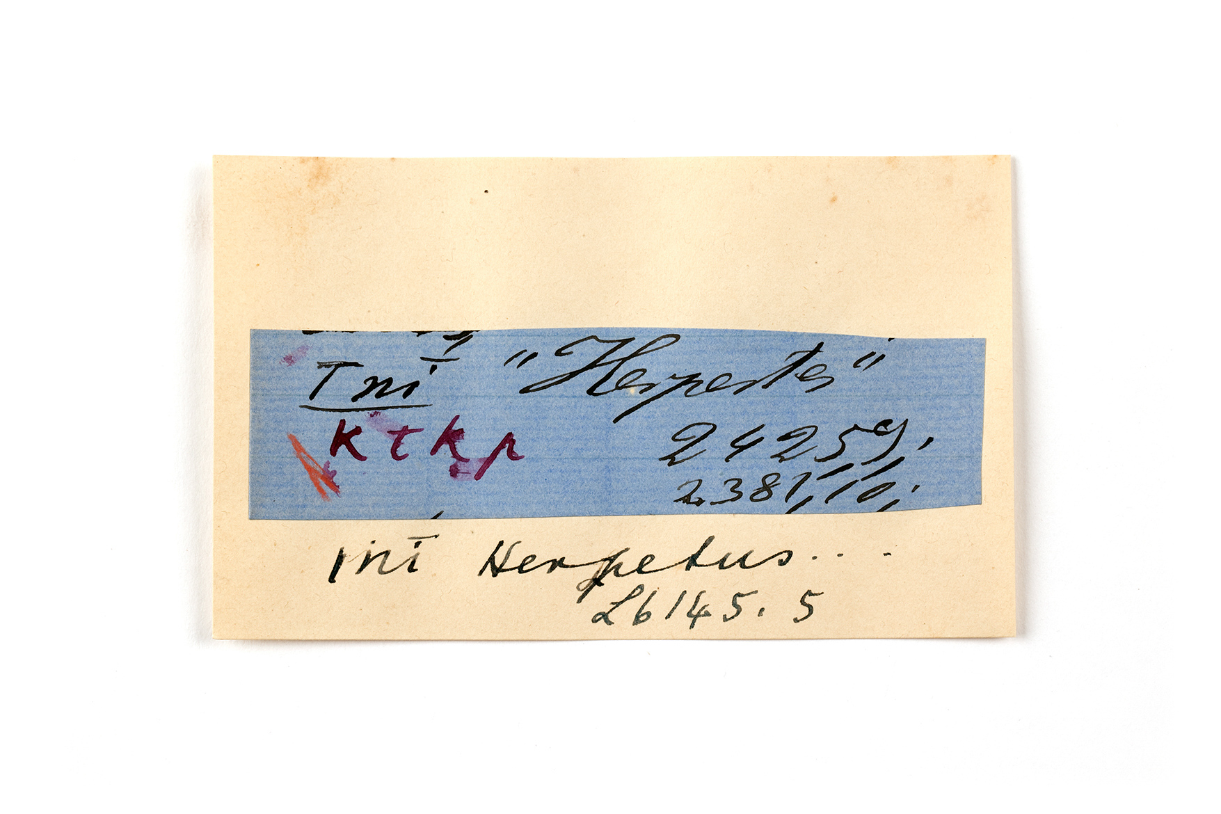 ink on blue paper glued on card