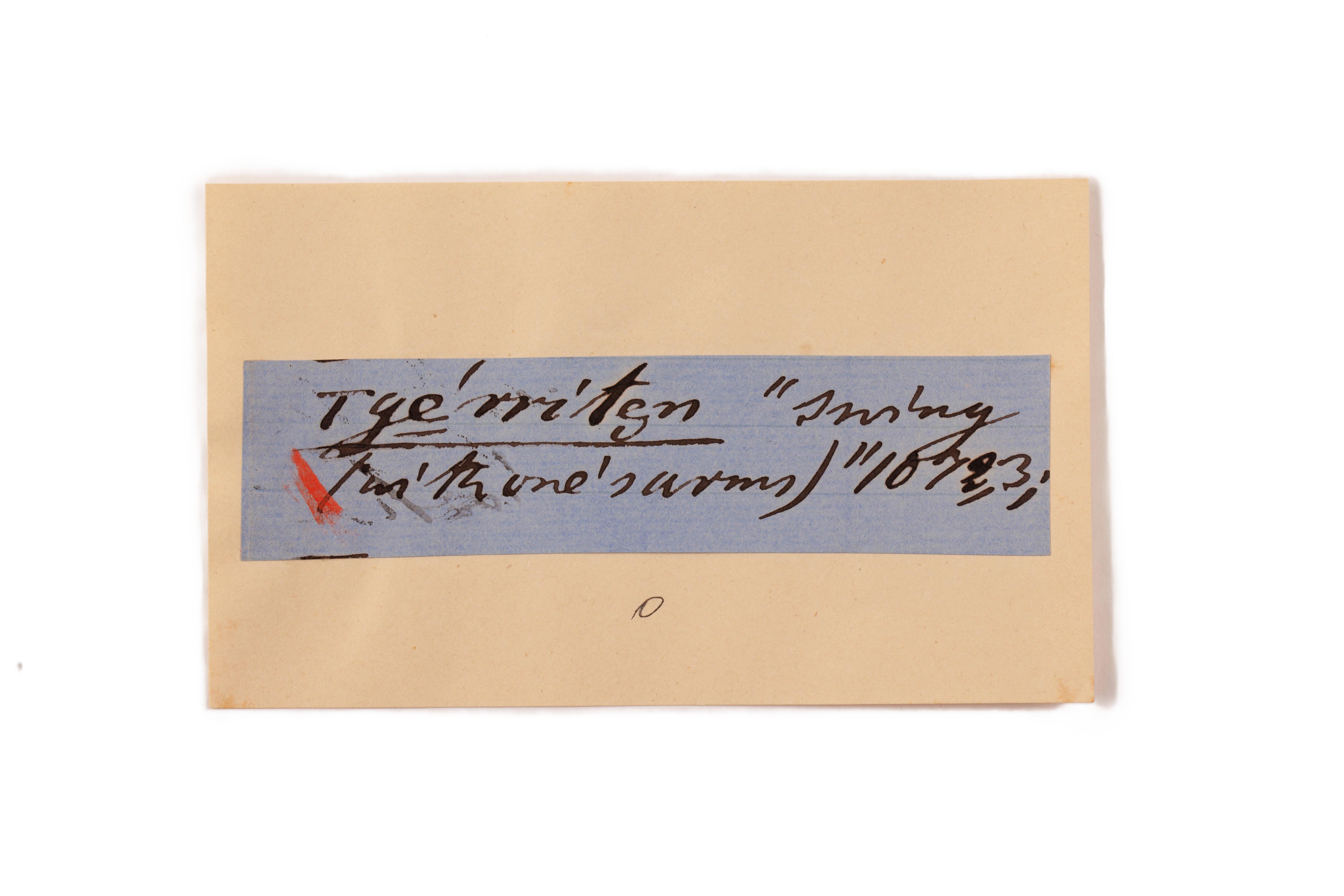 ink on blue paper glued on card