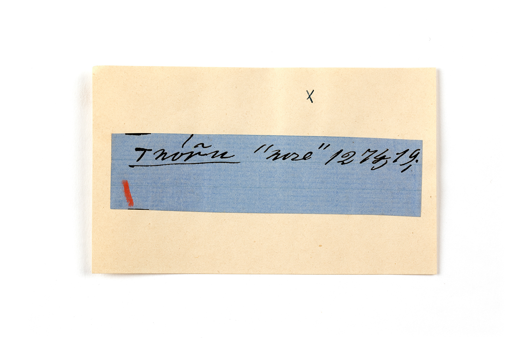 ink on blue paper glued on card