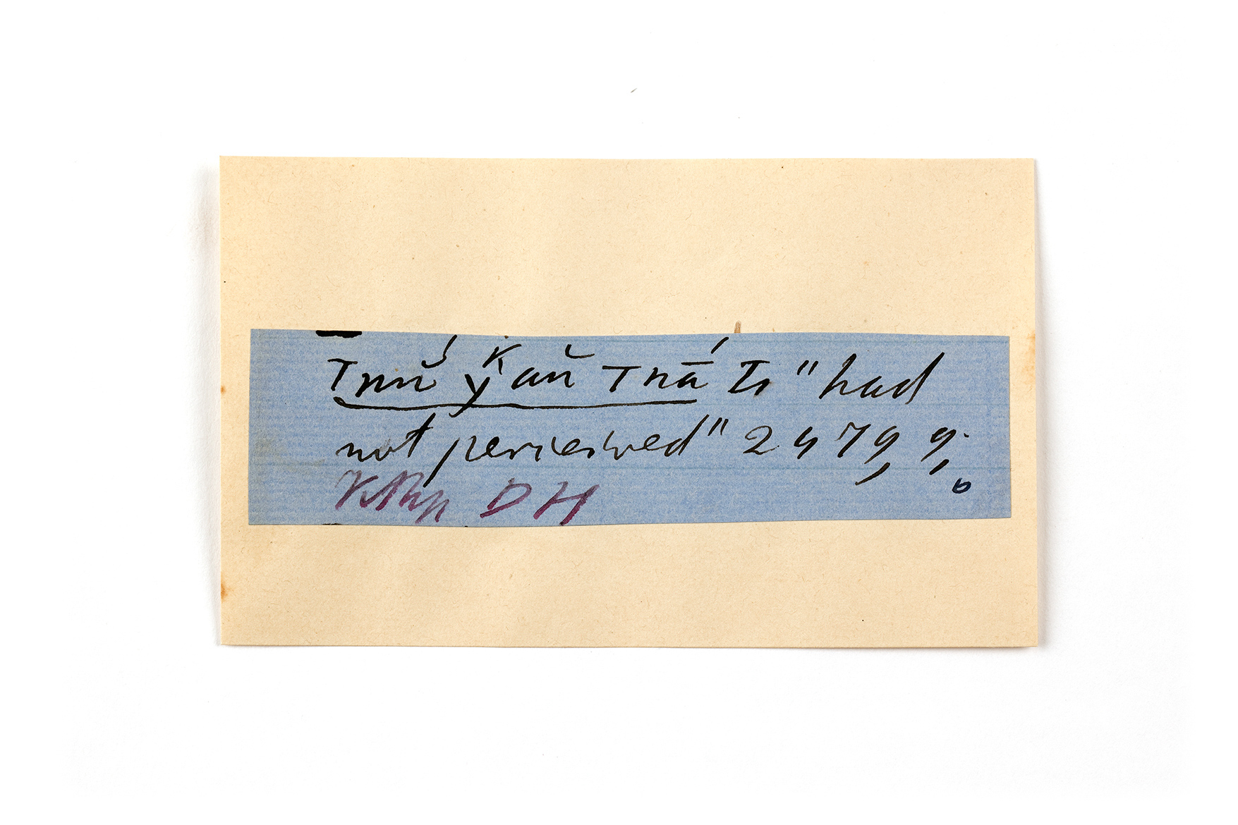 ink on blue paper glued on card