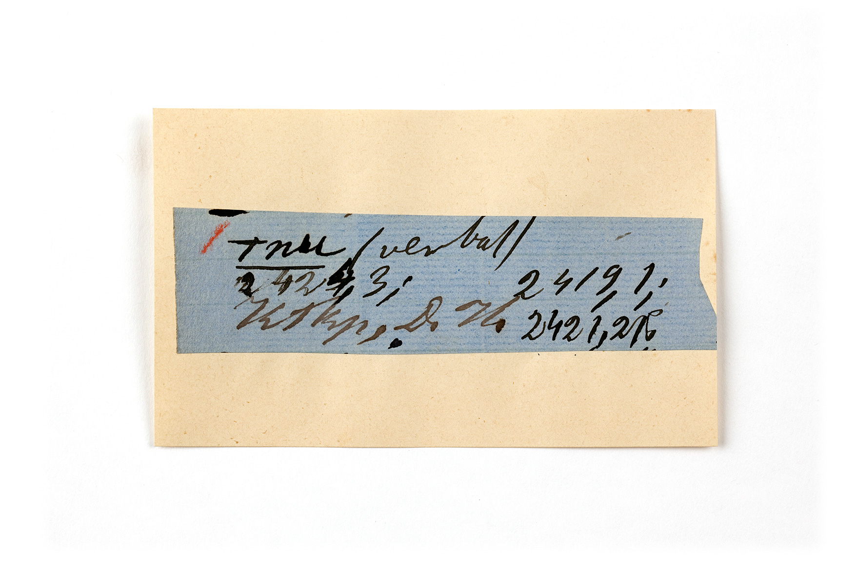 ink on blue paper glued on card