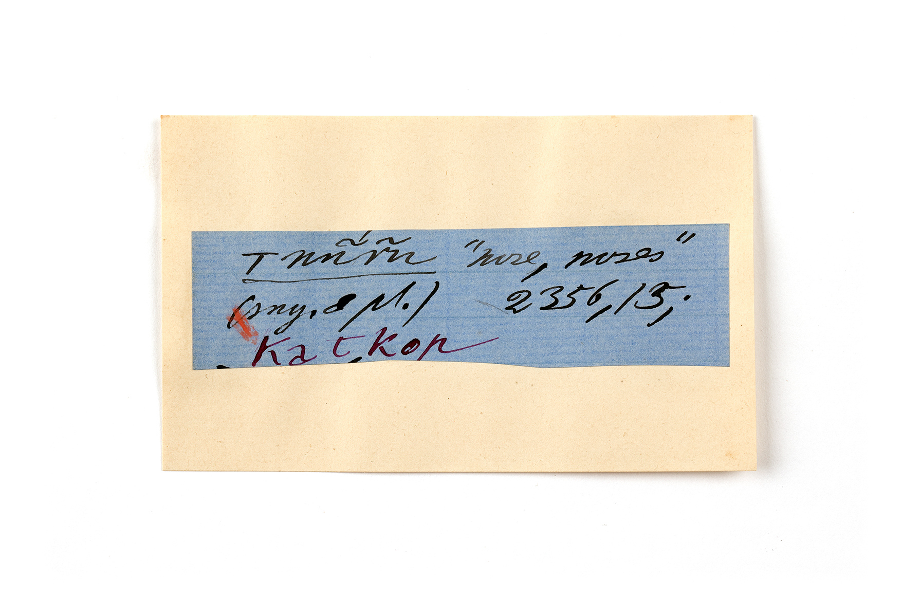 ink on blue paper glued on card