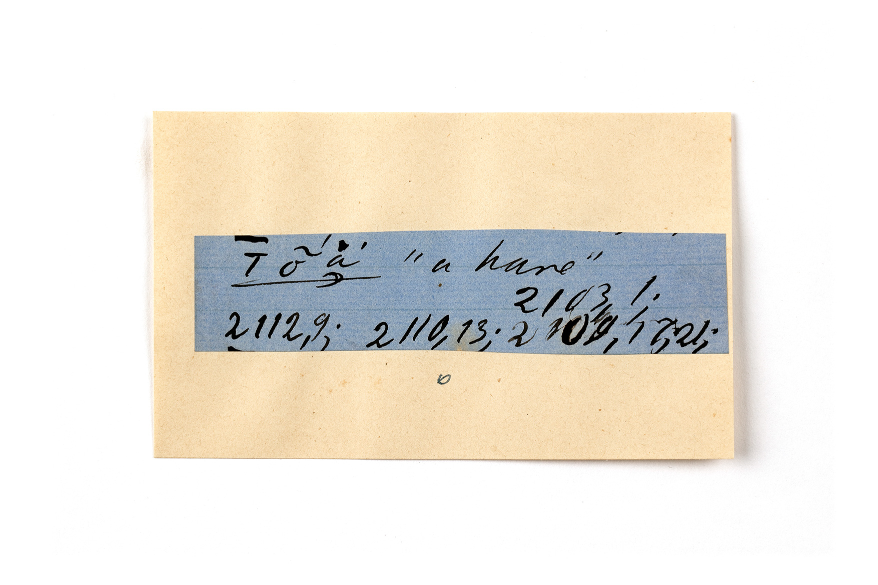 ink on blue paper glued on card