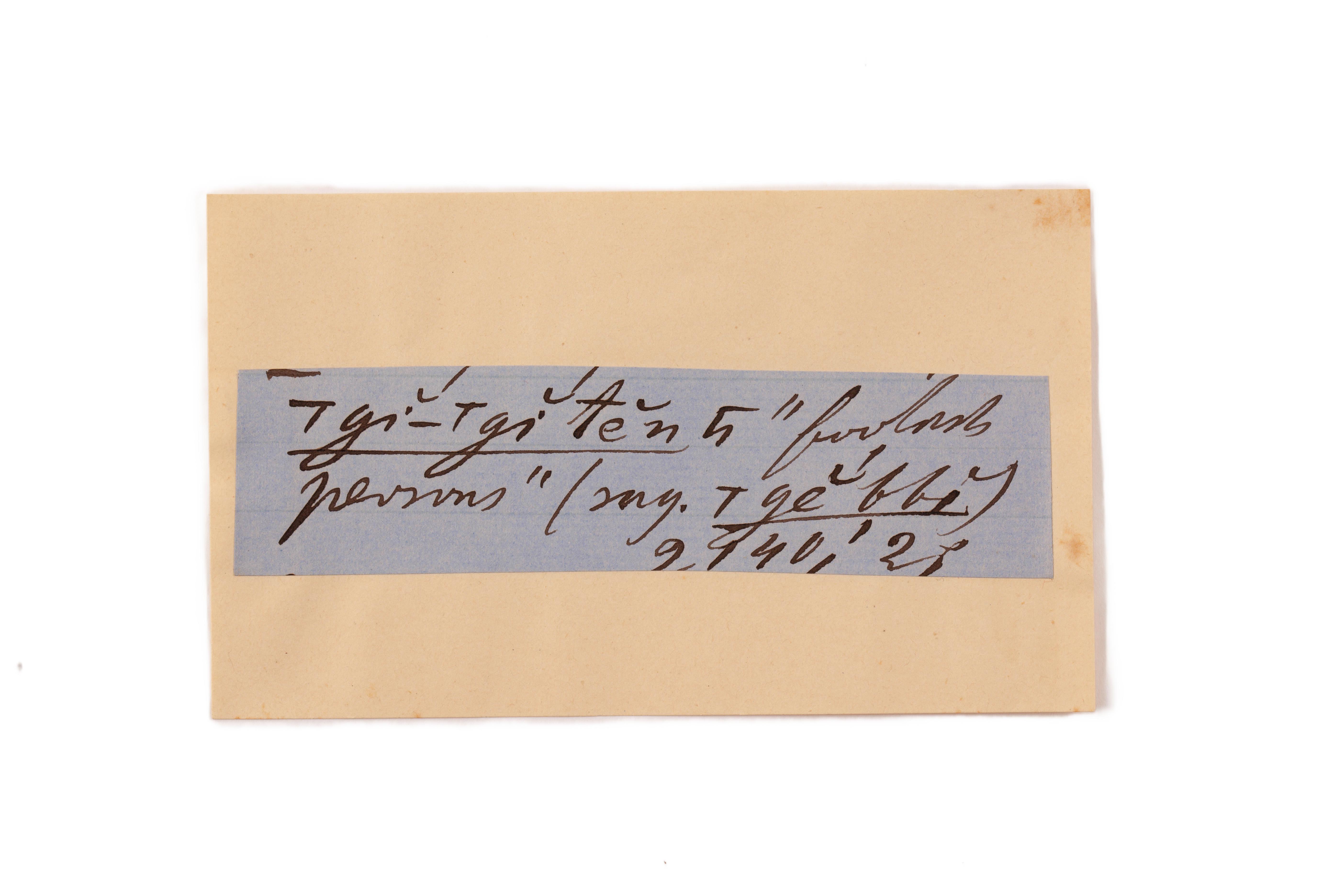 ink on blue paper glued on card