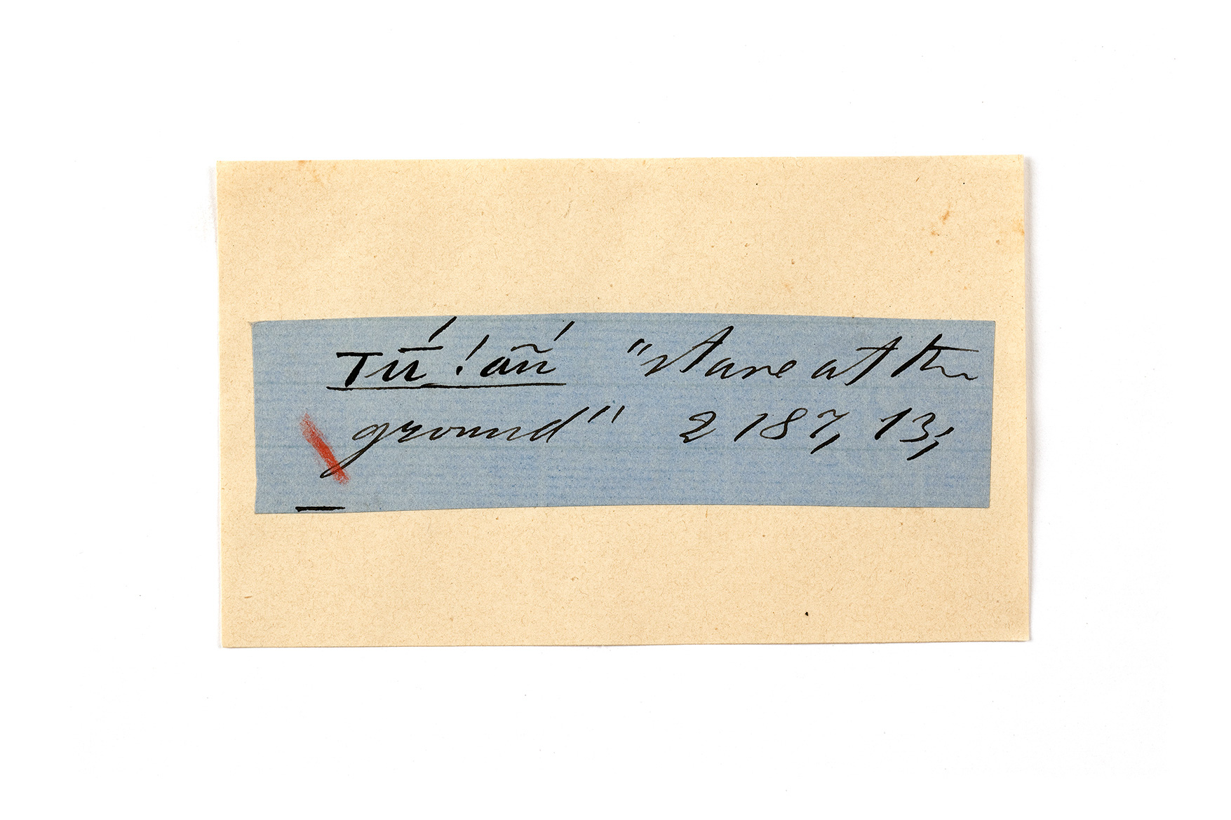 ink on blue paper glued on card