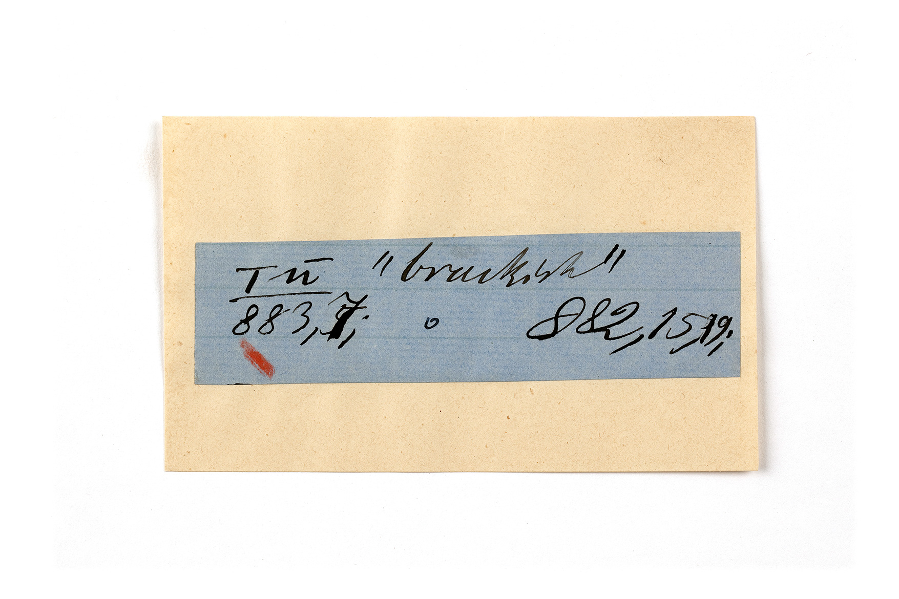 ink on blue paper glued on card