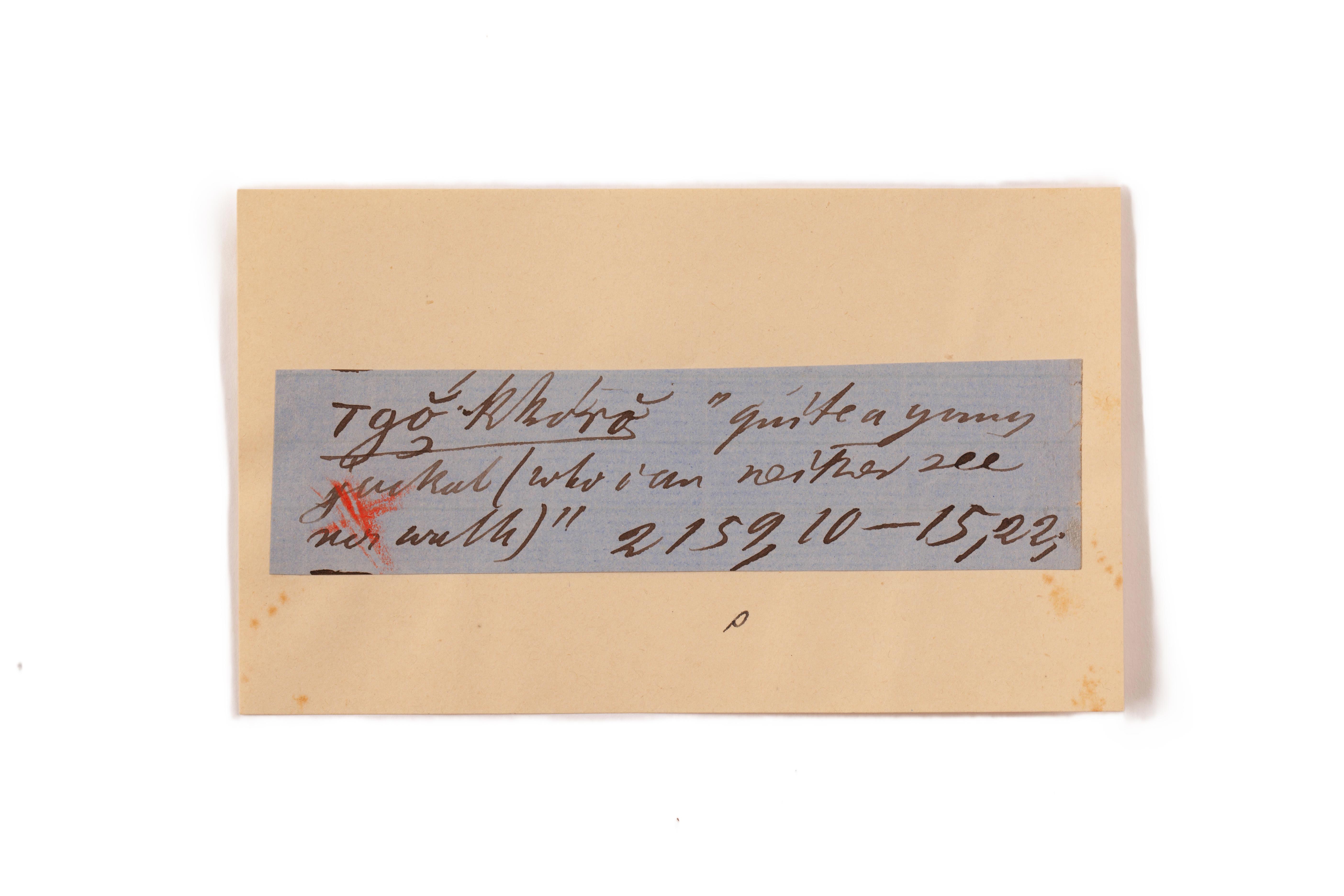 ink on blue paper glued on card