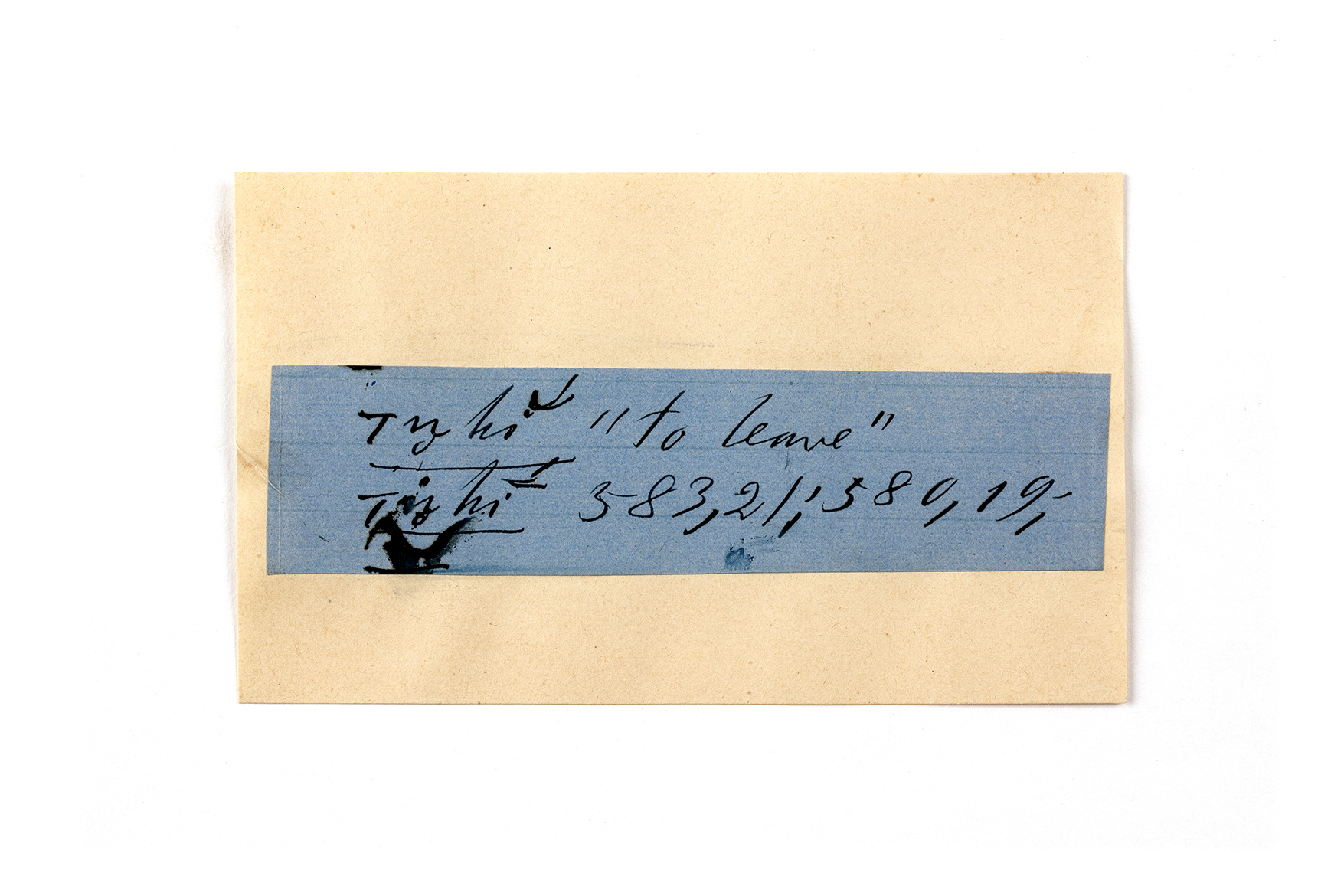 ink on blue paper glued on card