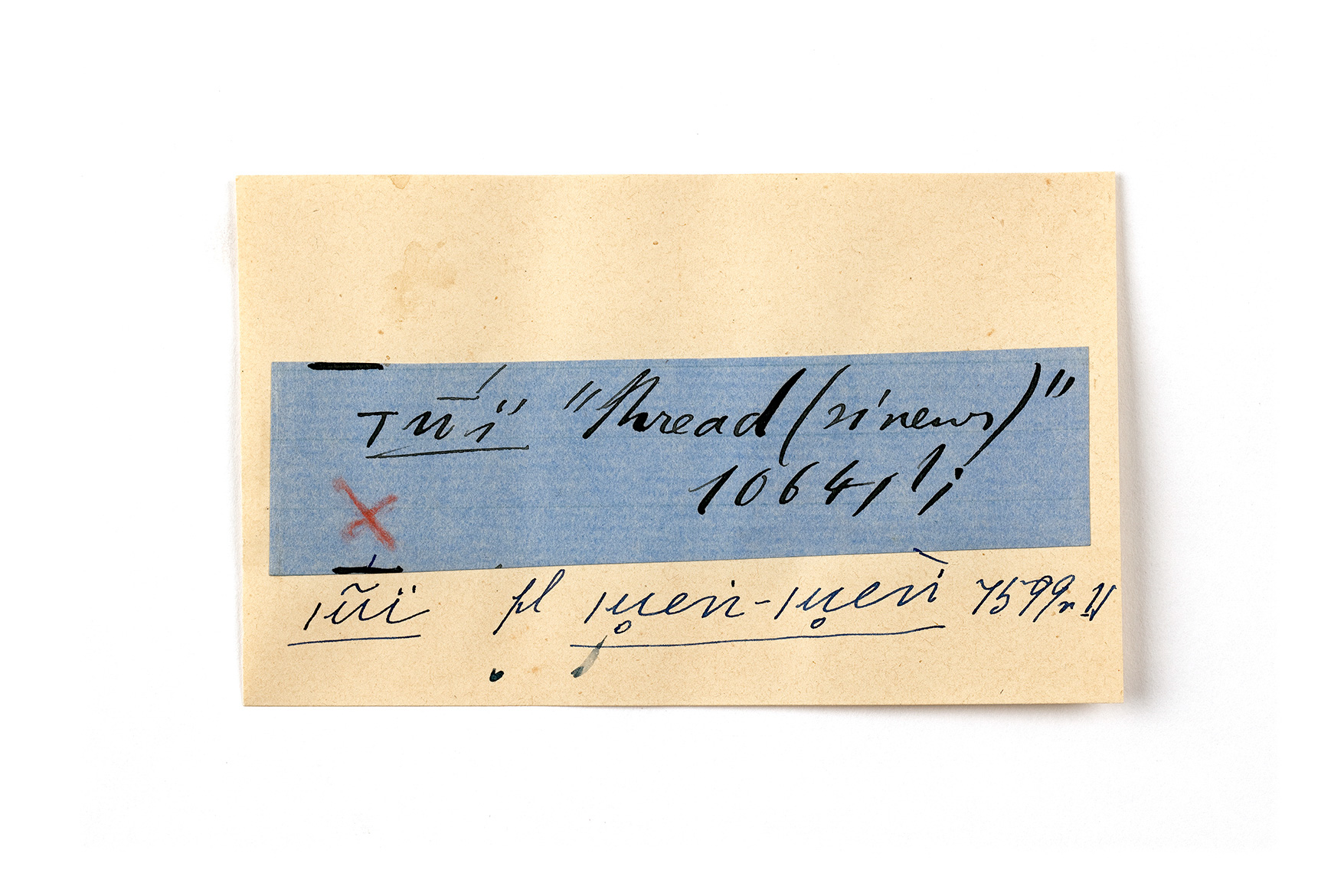 ink on blue paper glued on card
