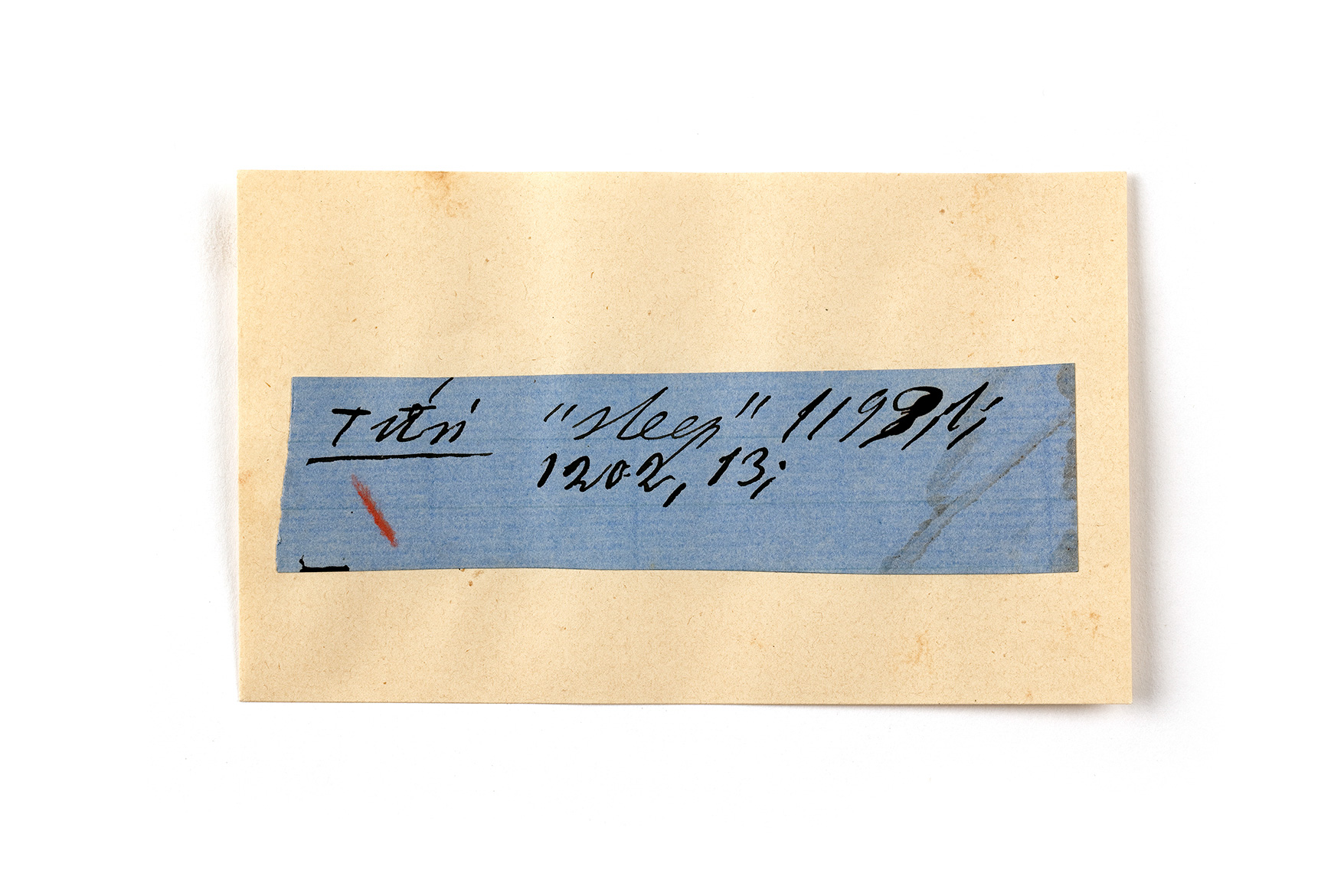 ink on blue paper glued on card