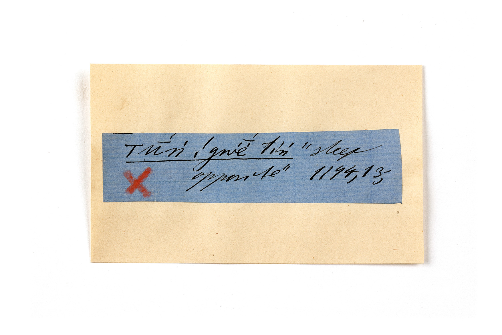 ink on blue paper glued on card