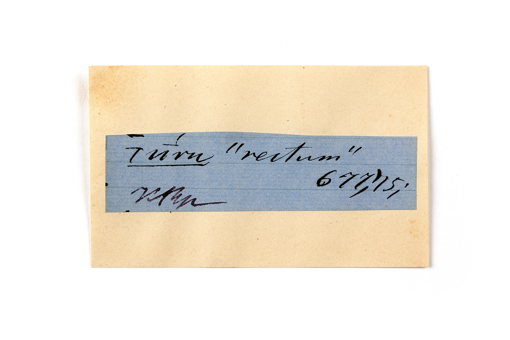 ink on blue paper glued on card