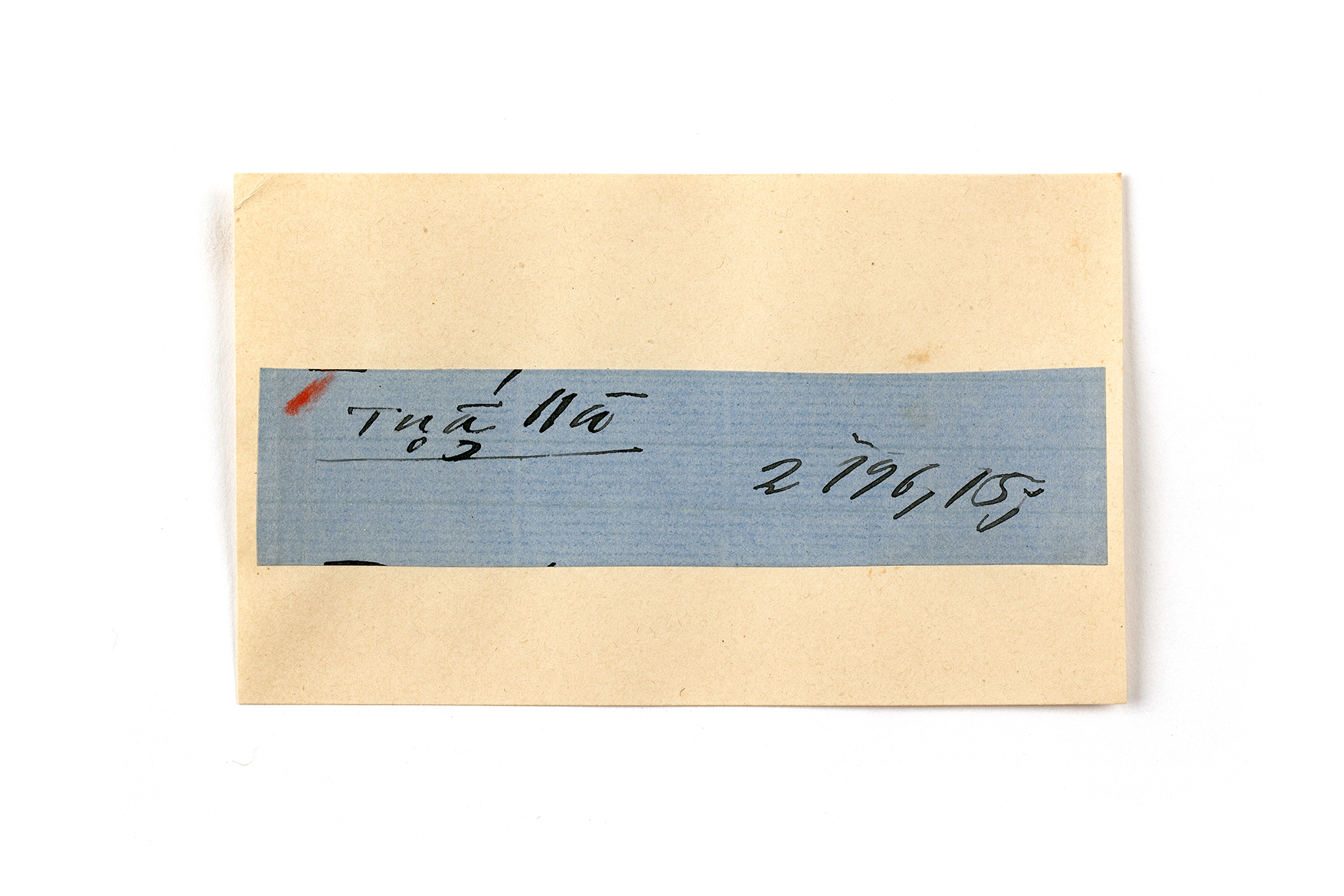 ink on blue paper glued on card