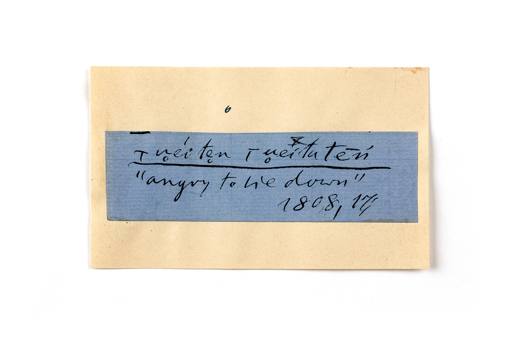 ink on blue paper glued on card