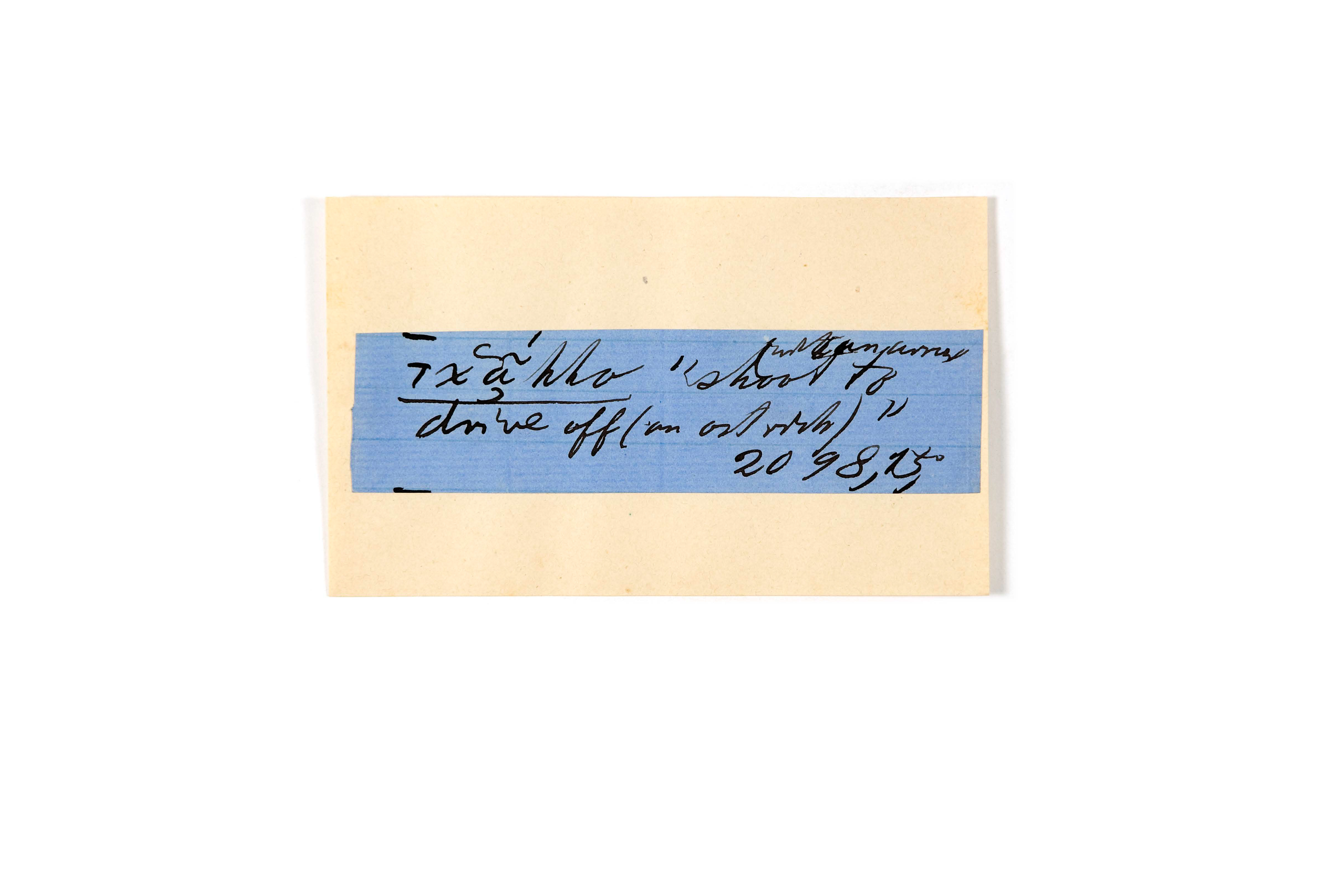 ink on blue paper glued on card