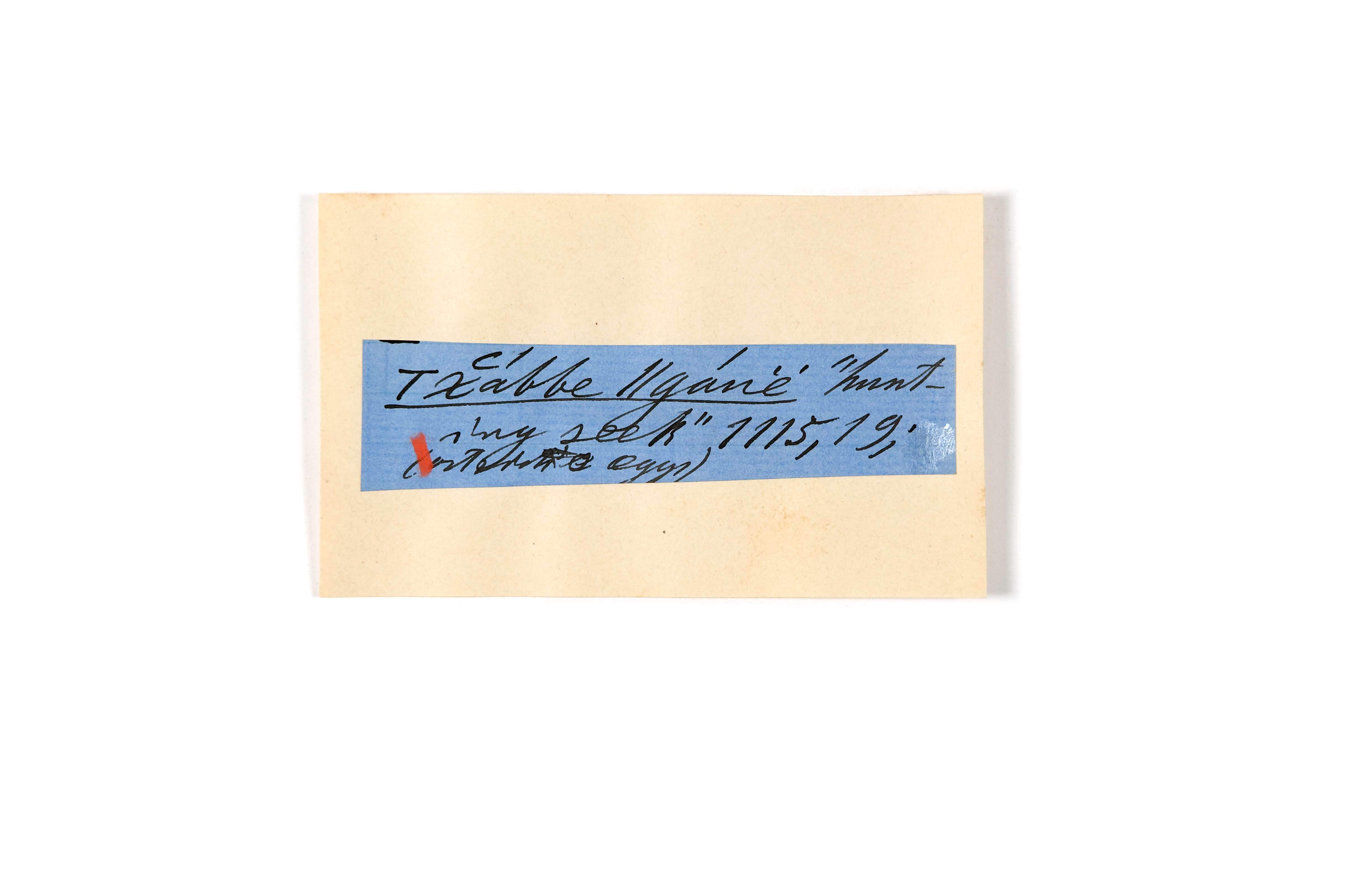 ink on blue paper glued on card