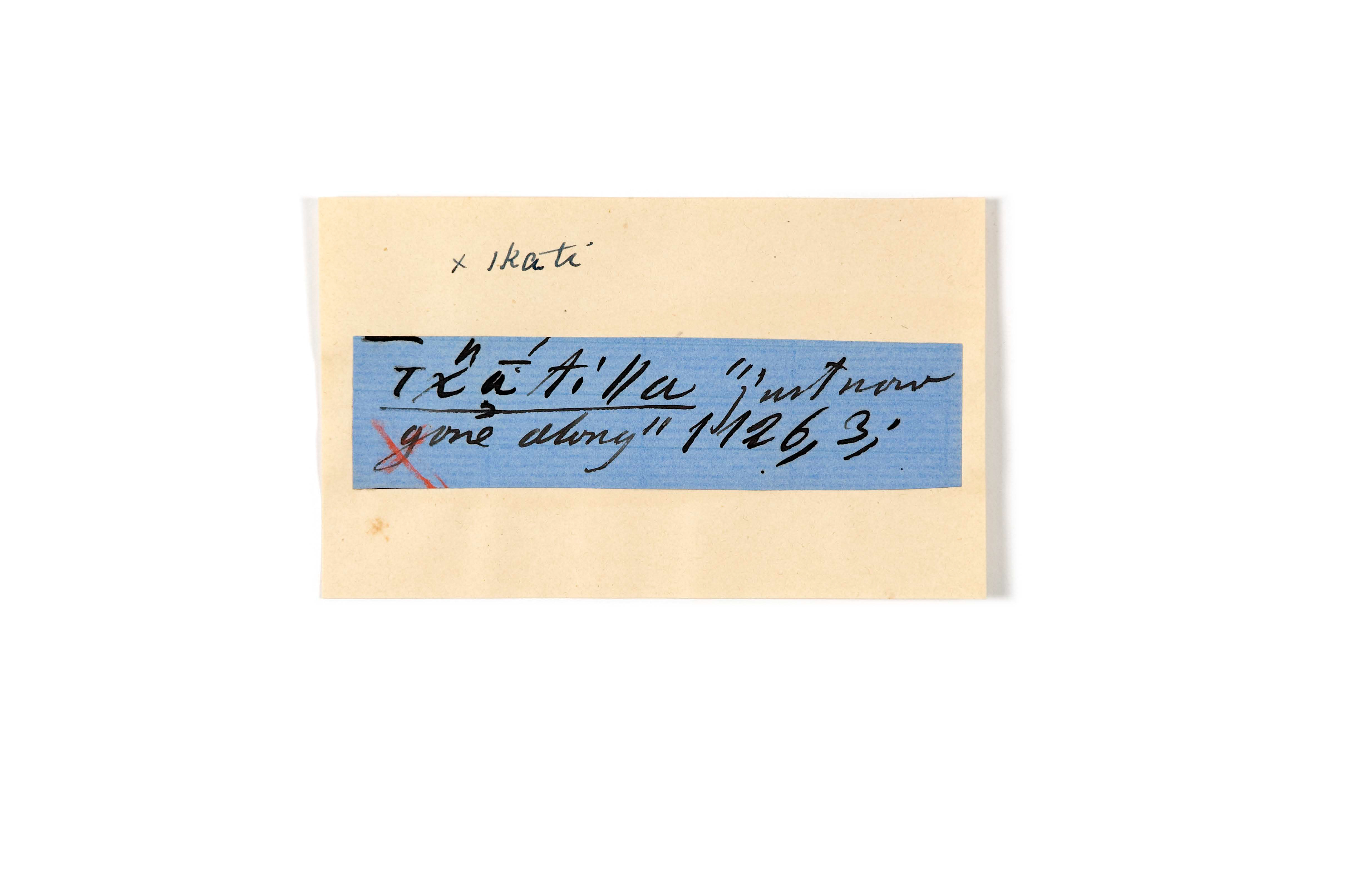 ink on blue paper glued on card