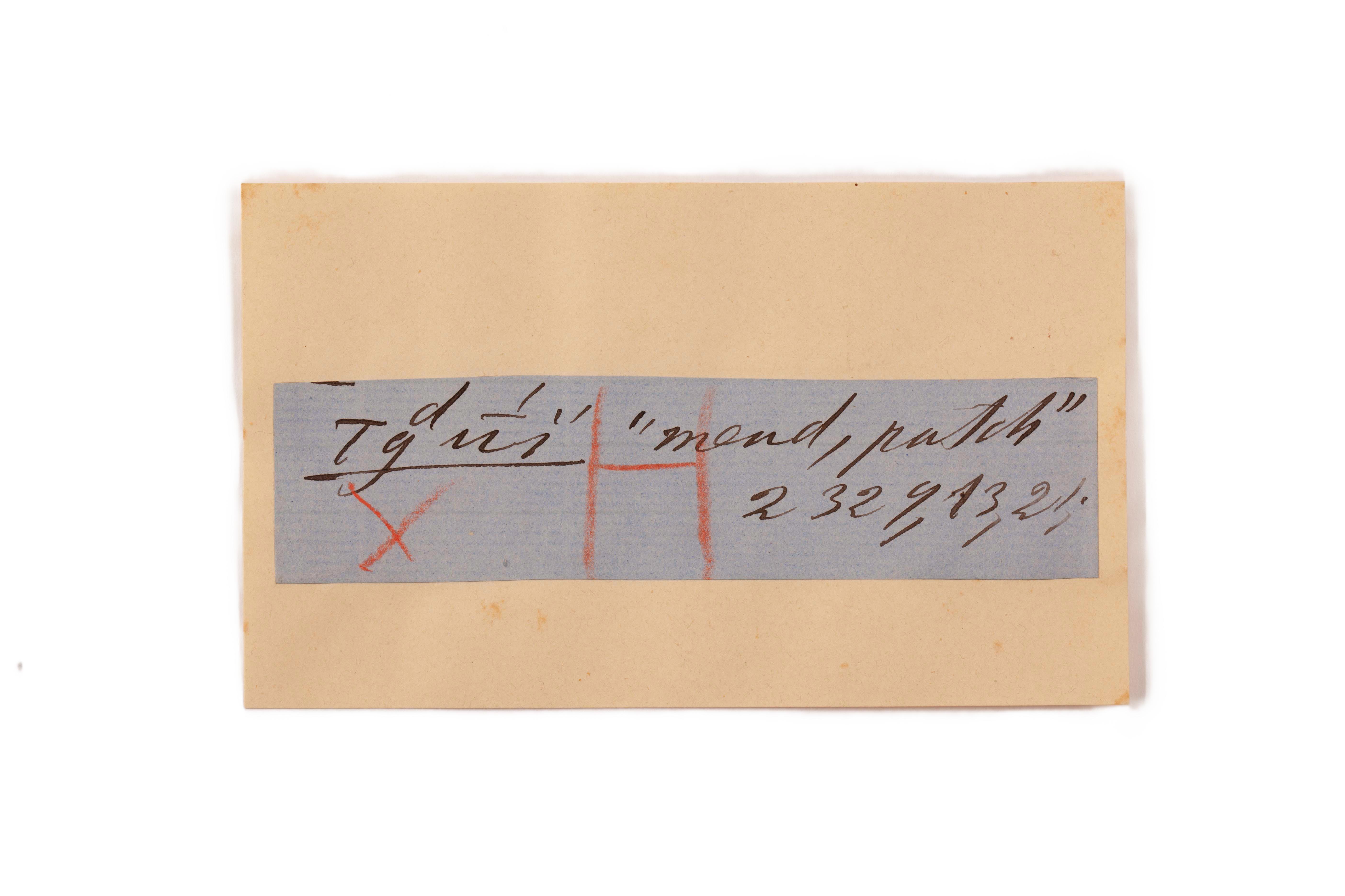 ink on blue paper glued on card