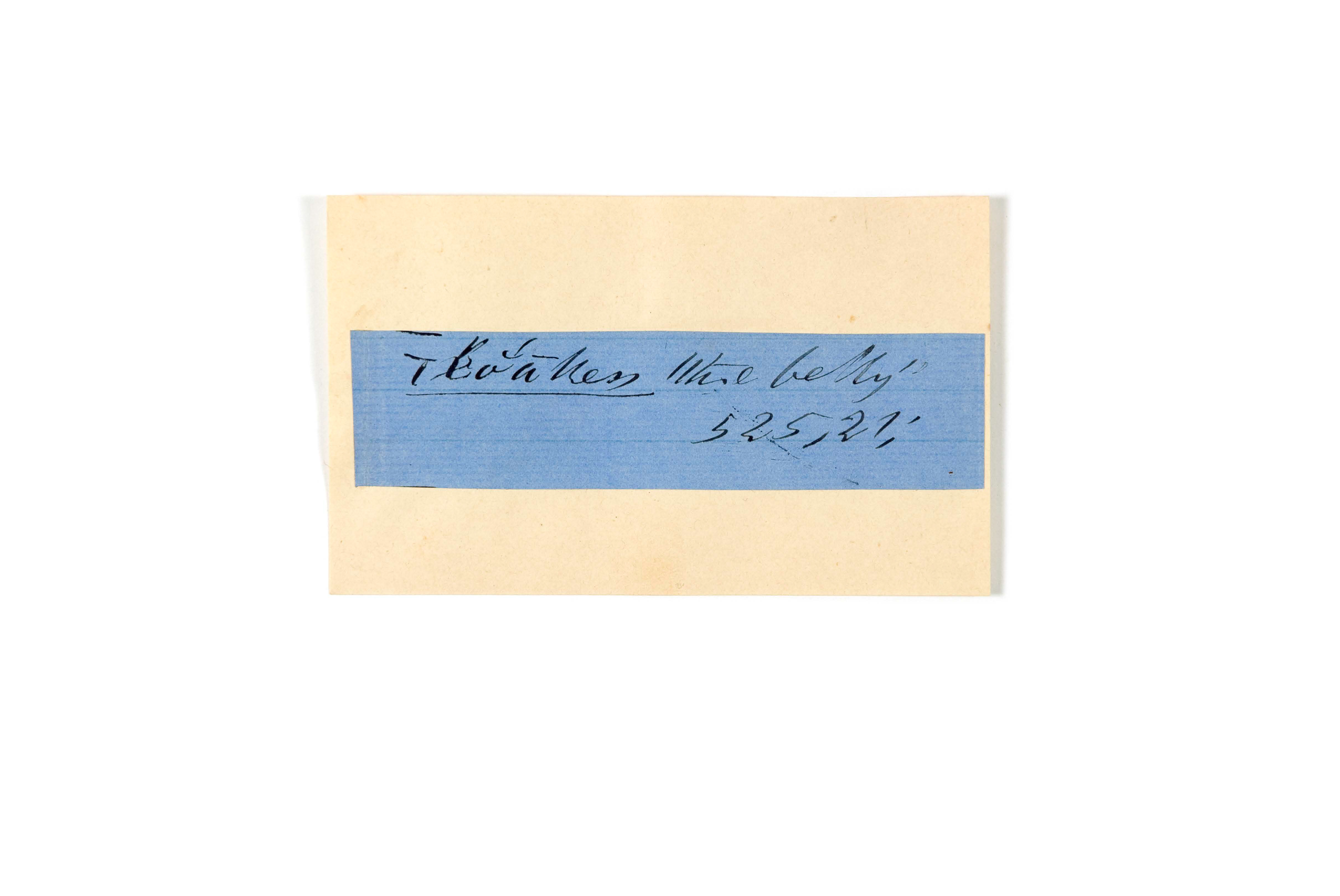 ink on blue paper glued on card