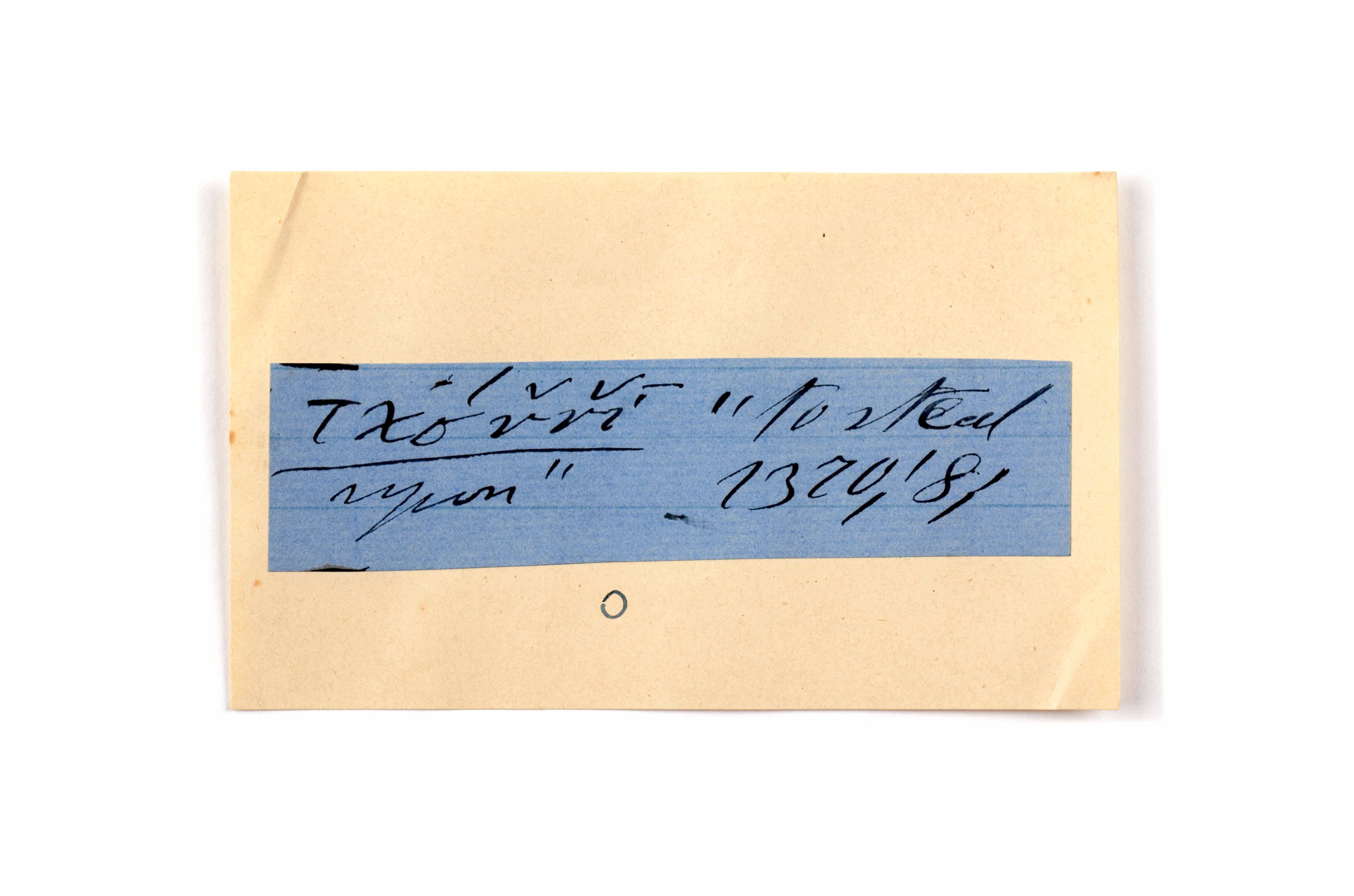 ink on blue paper glued on card