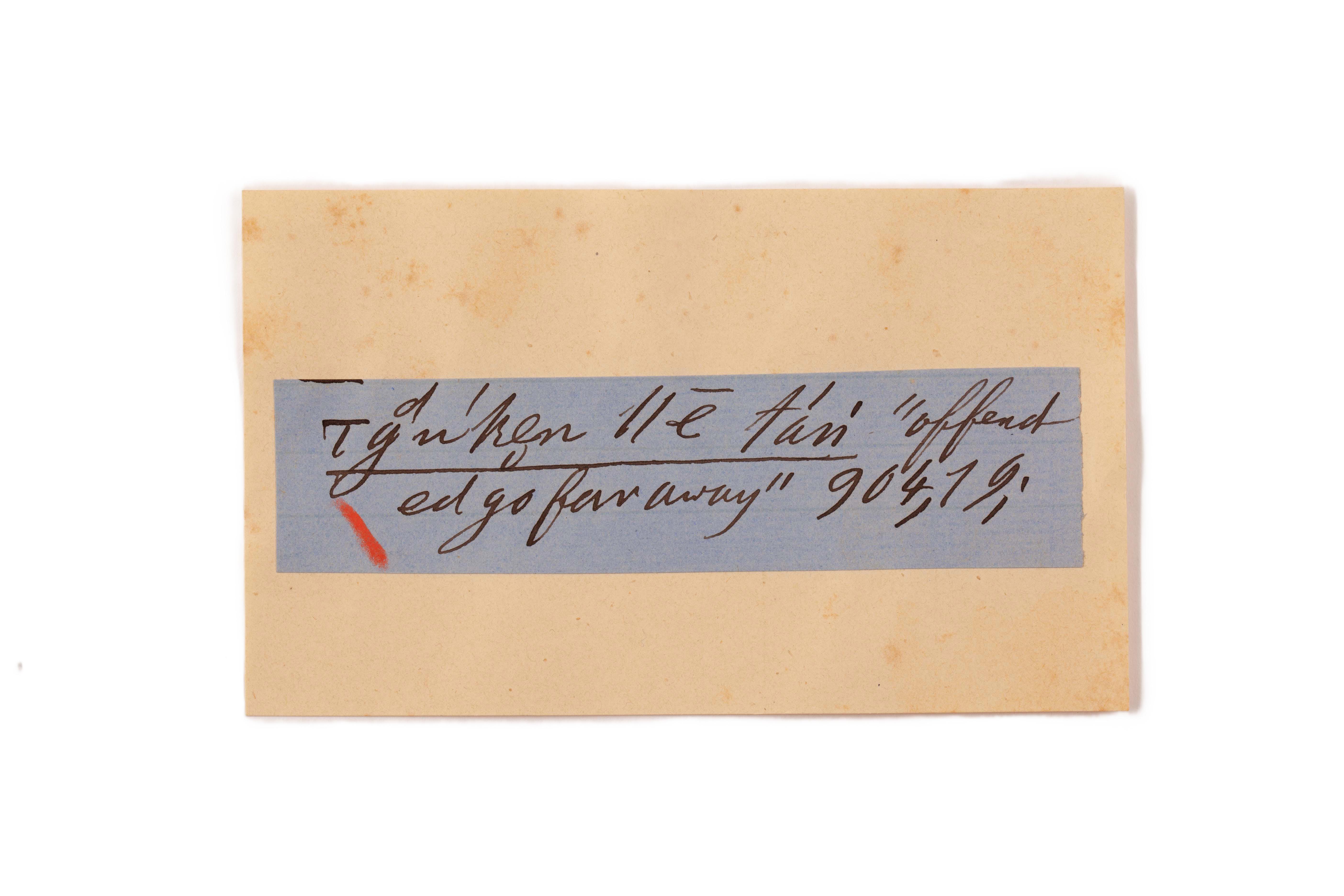 ink on blue paper glued on card