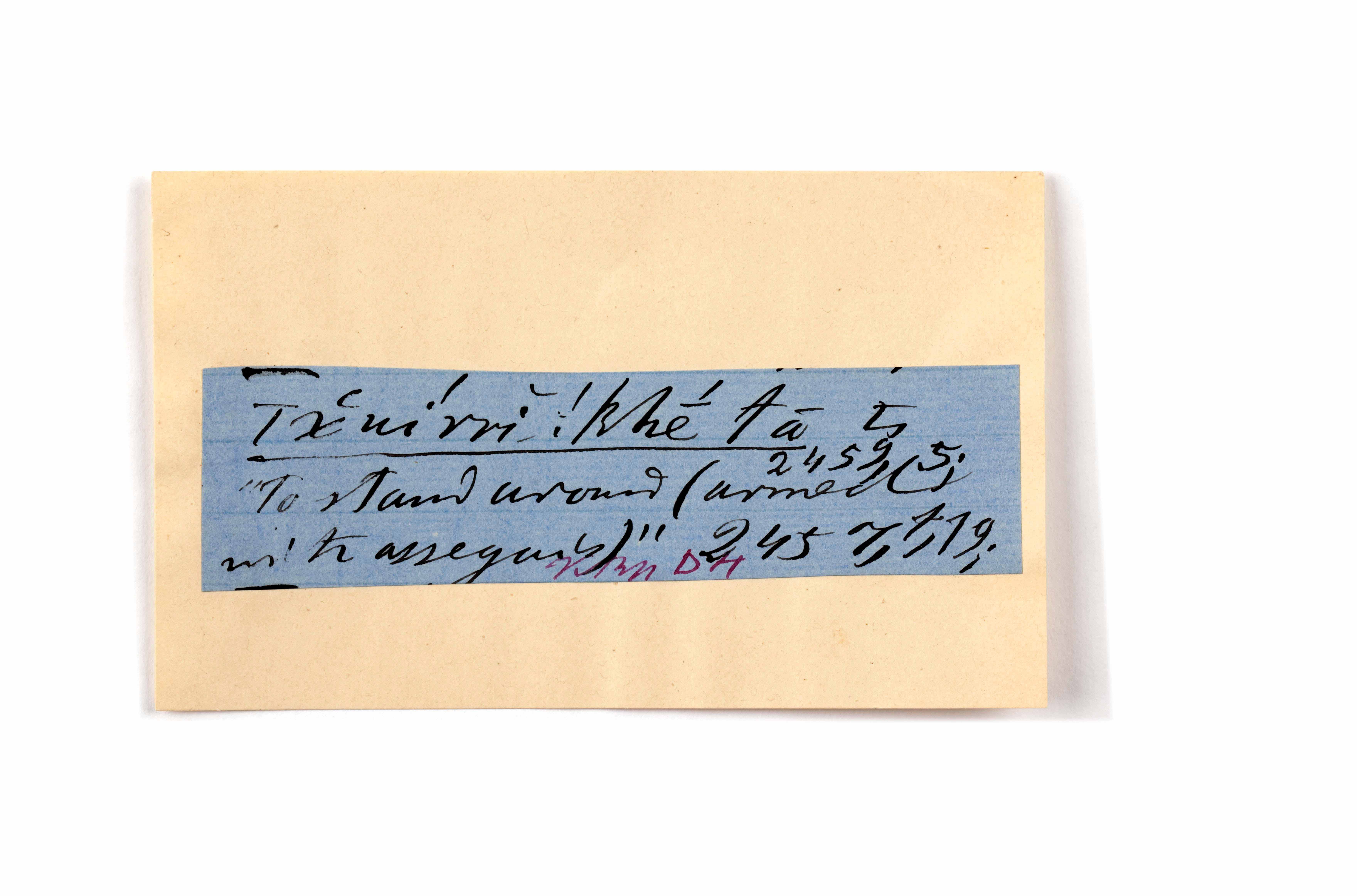 ink on blue paper glued on card
