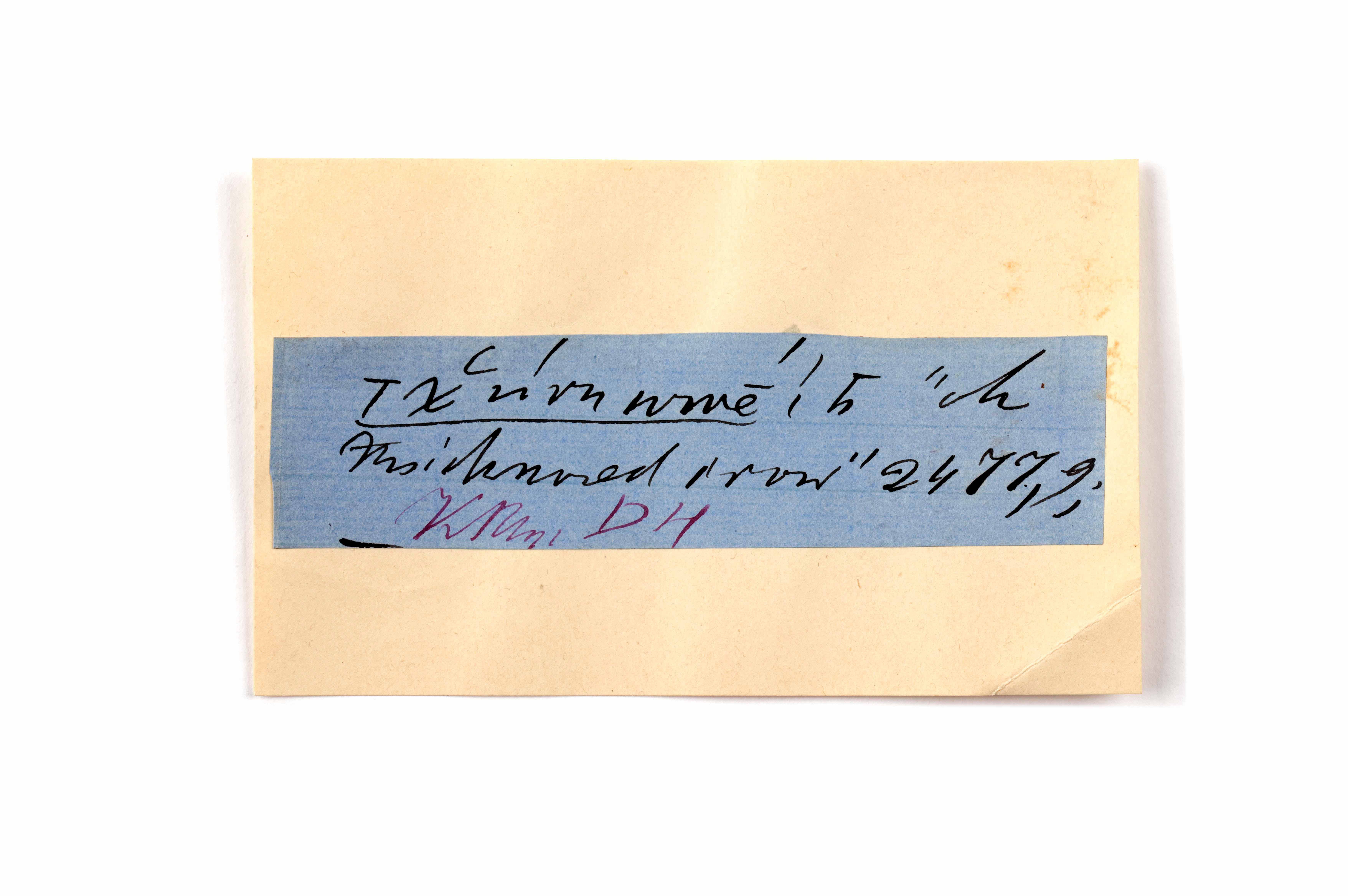 ink on blue paper glued on card