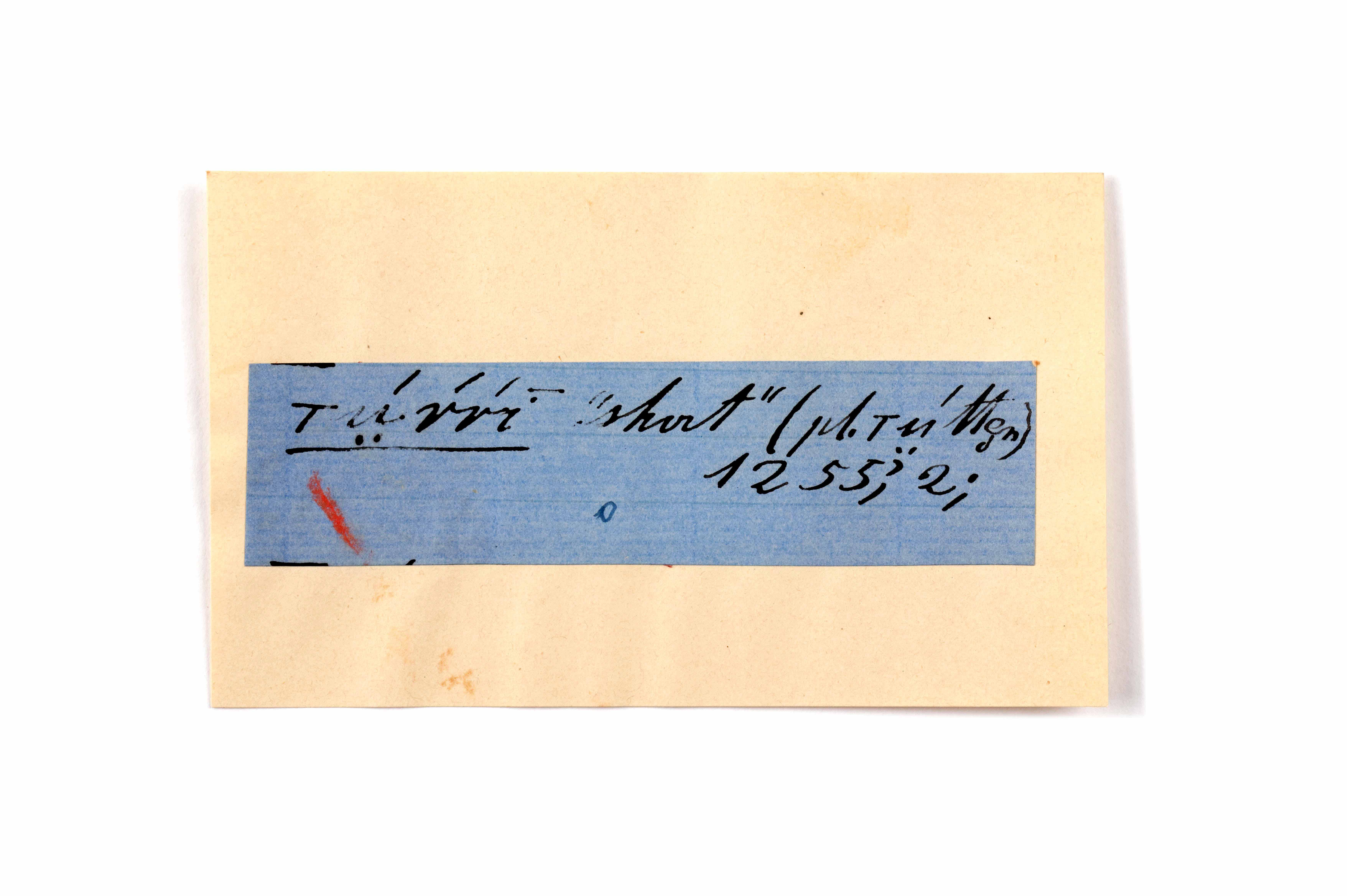 ink on blue paper glued on card