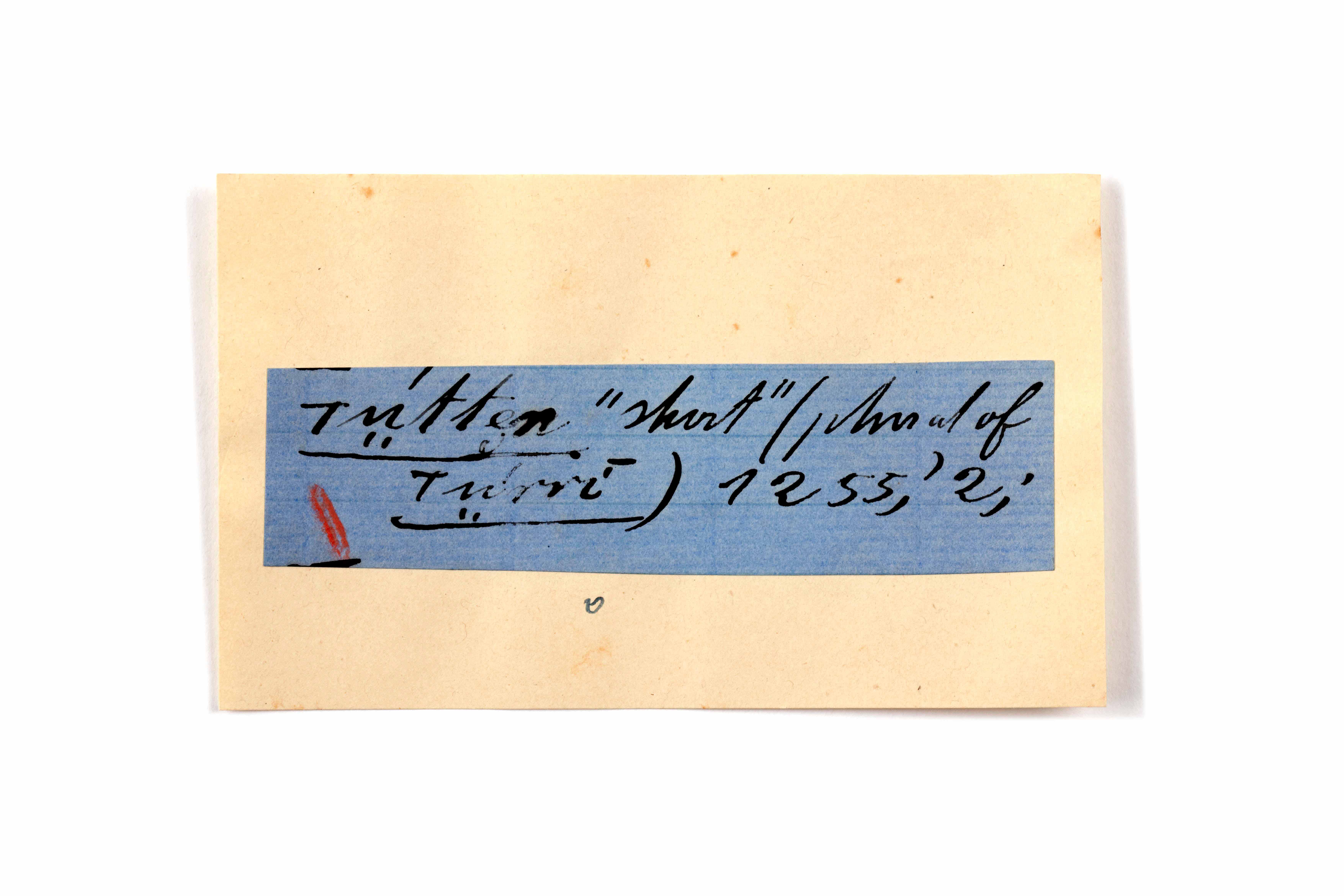 ink on blue paper glued on card