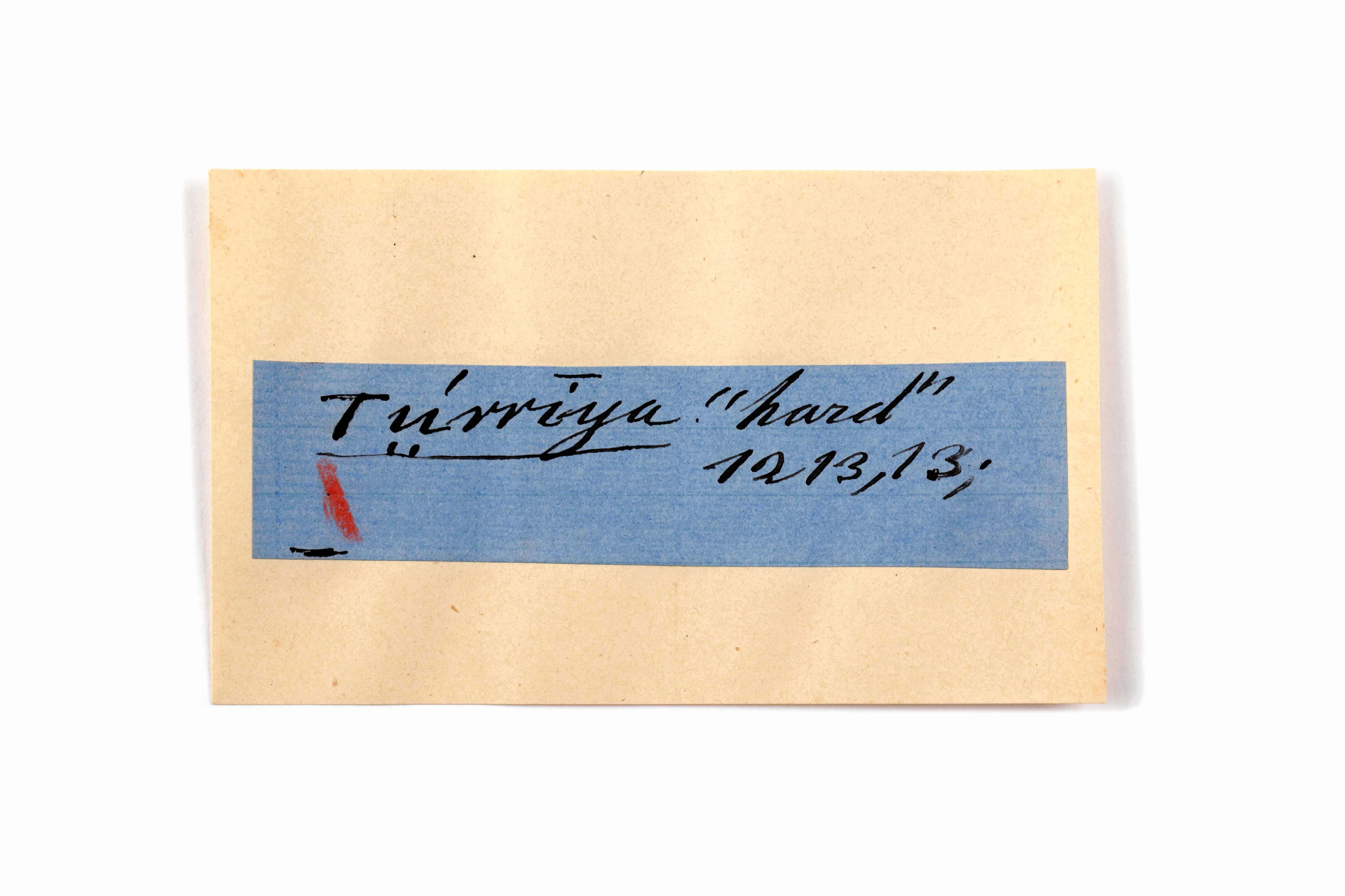 ink on blue paper glued on card