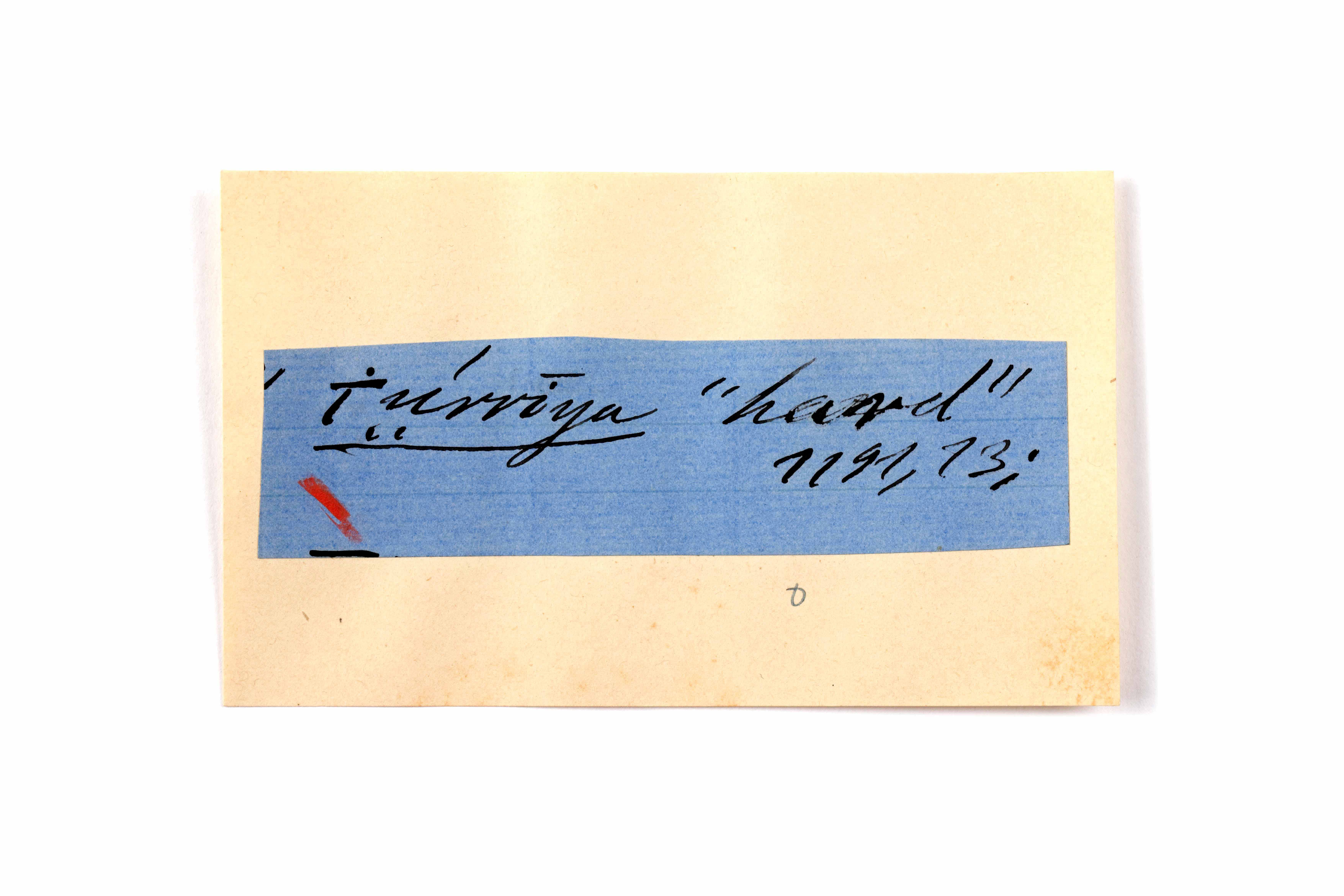 ink on blue paper glued on card