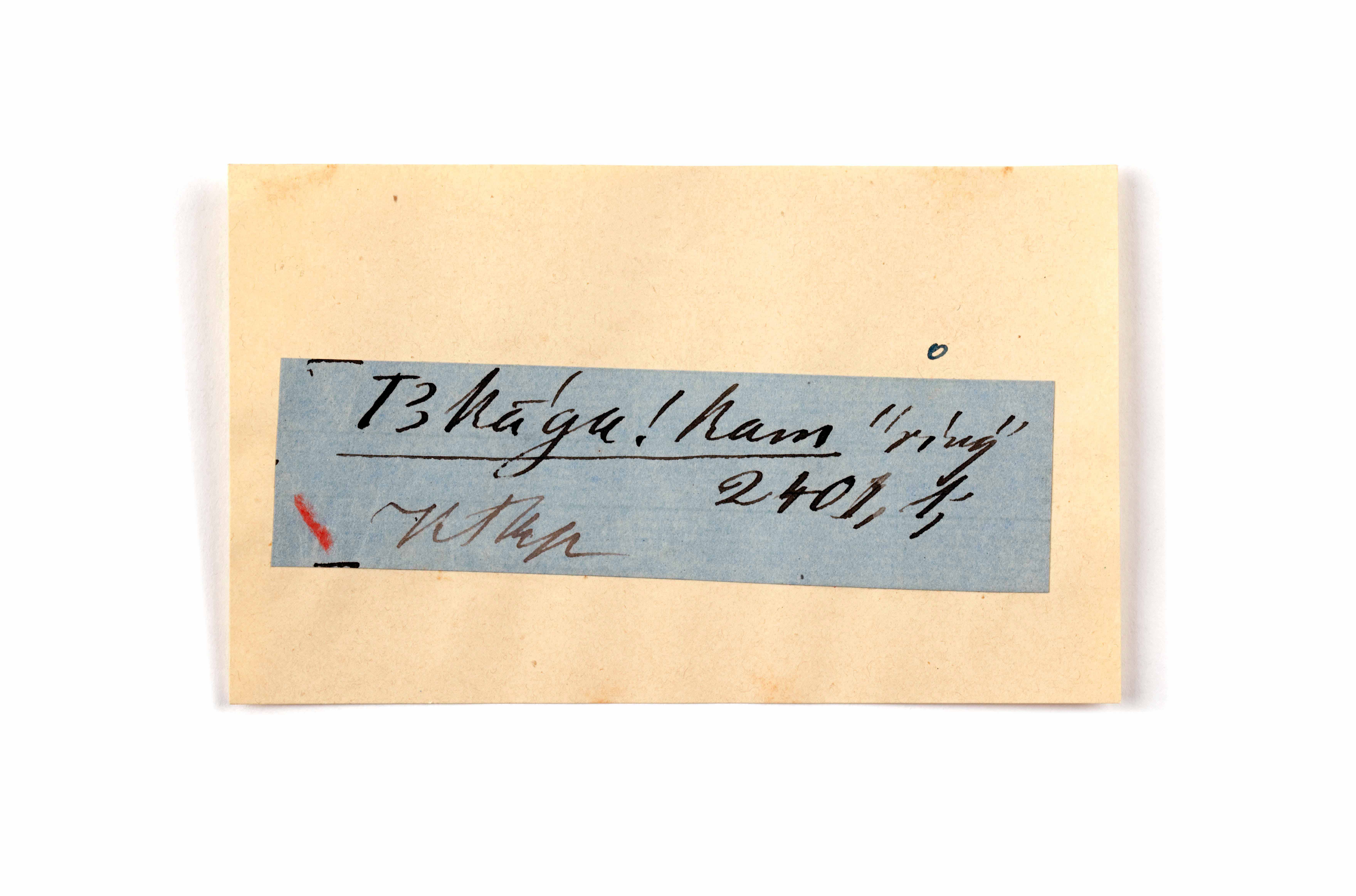 ink on blue paper glued on card