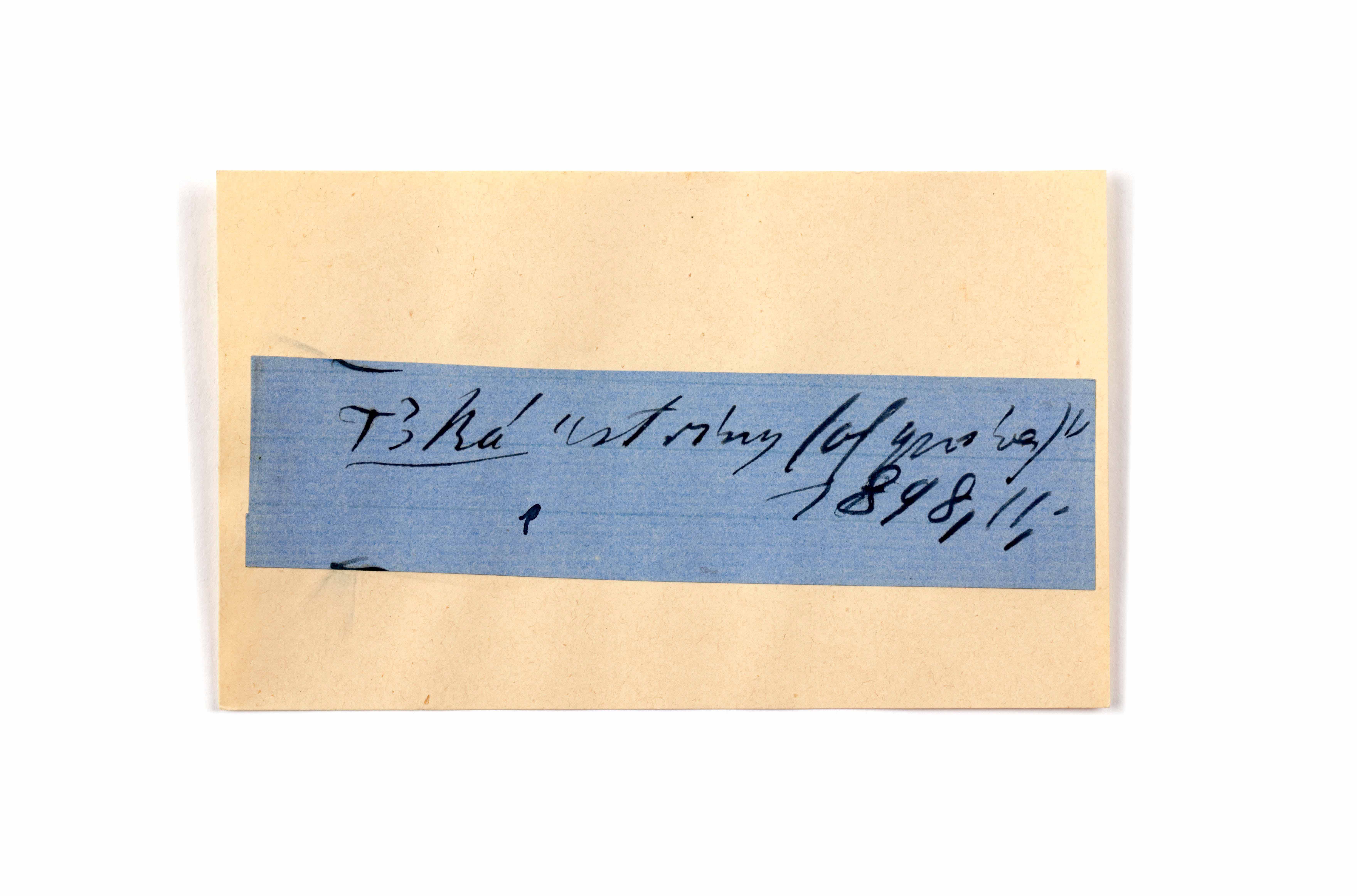 ink on blue paper glued on card